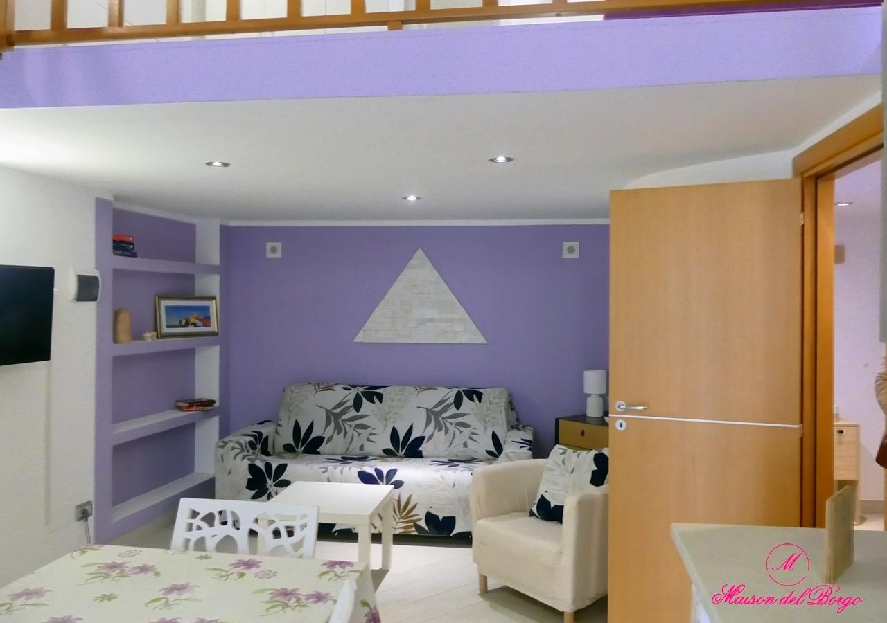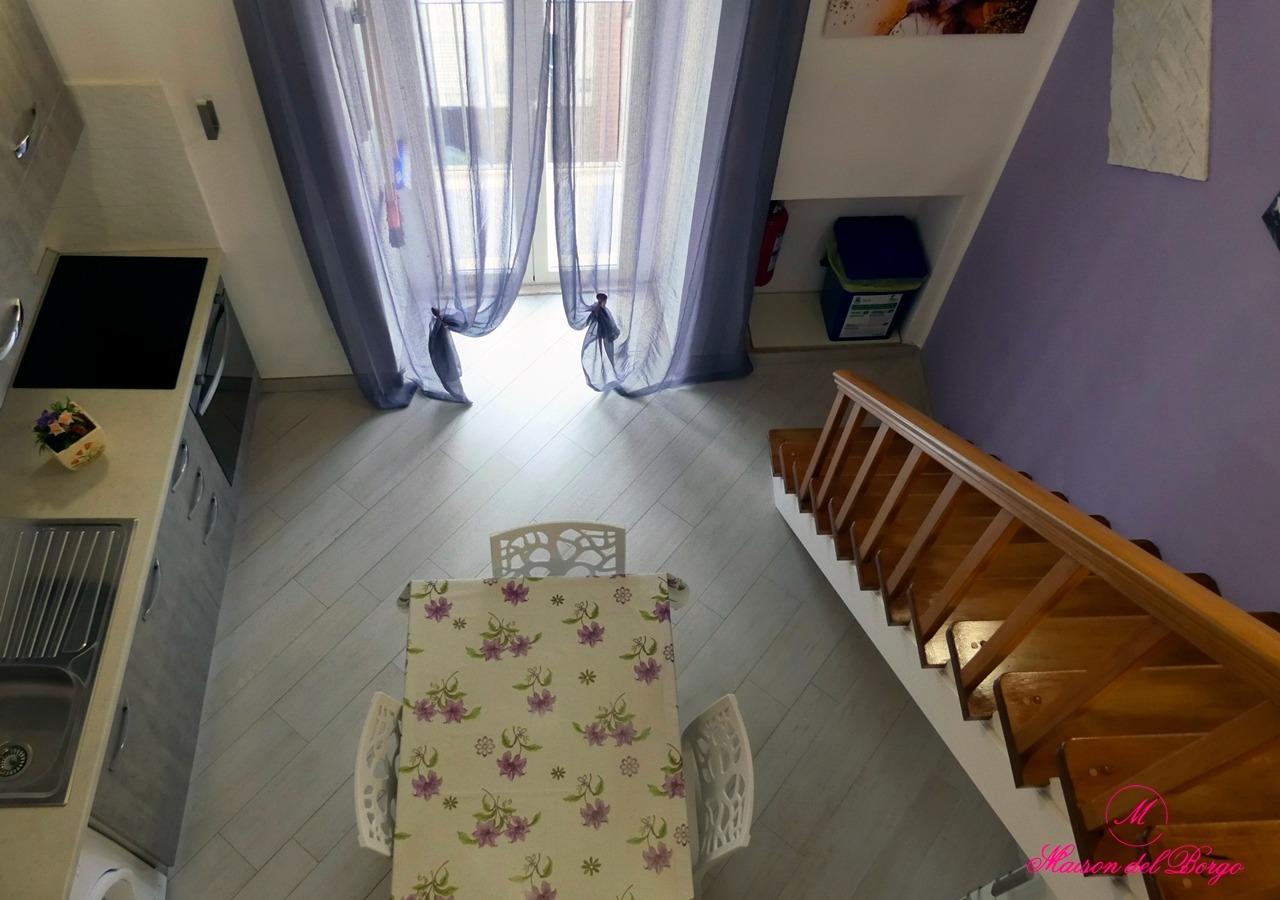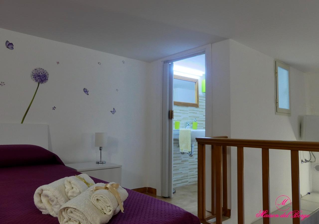 L’appartamento si sviluppa su due livelli: al piano superiore si trova una camera matrimoniale con bagno privato, mentre al piano inferiore sono presenti un ingresso indipendente, un soggiorno con divano letto matrimoniale e angolo cottura a induzione completo di stoviglie, un secondo bagno e un balcone. Gli ambienti sono climatizzati, dotati di Wi-Fi e di una smart TV. È disponibile anche una lavatrice, e su richiesta è possibile usufruire del servizio di noleggio biancheria da letto e da bagno.