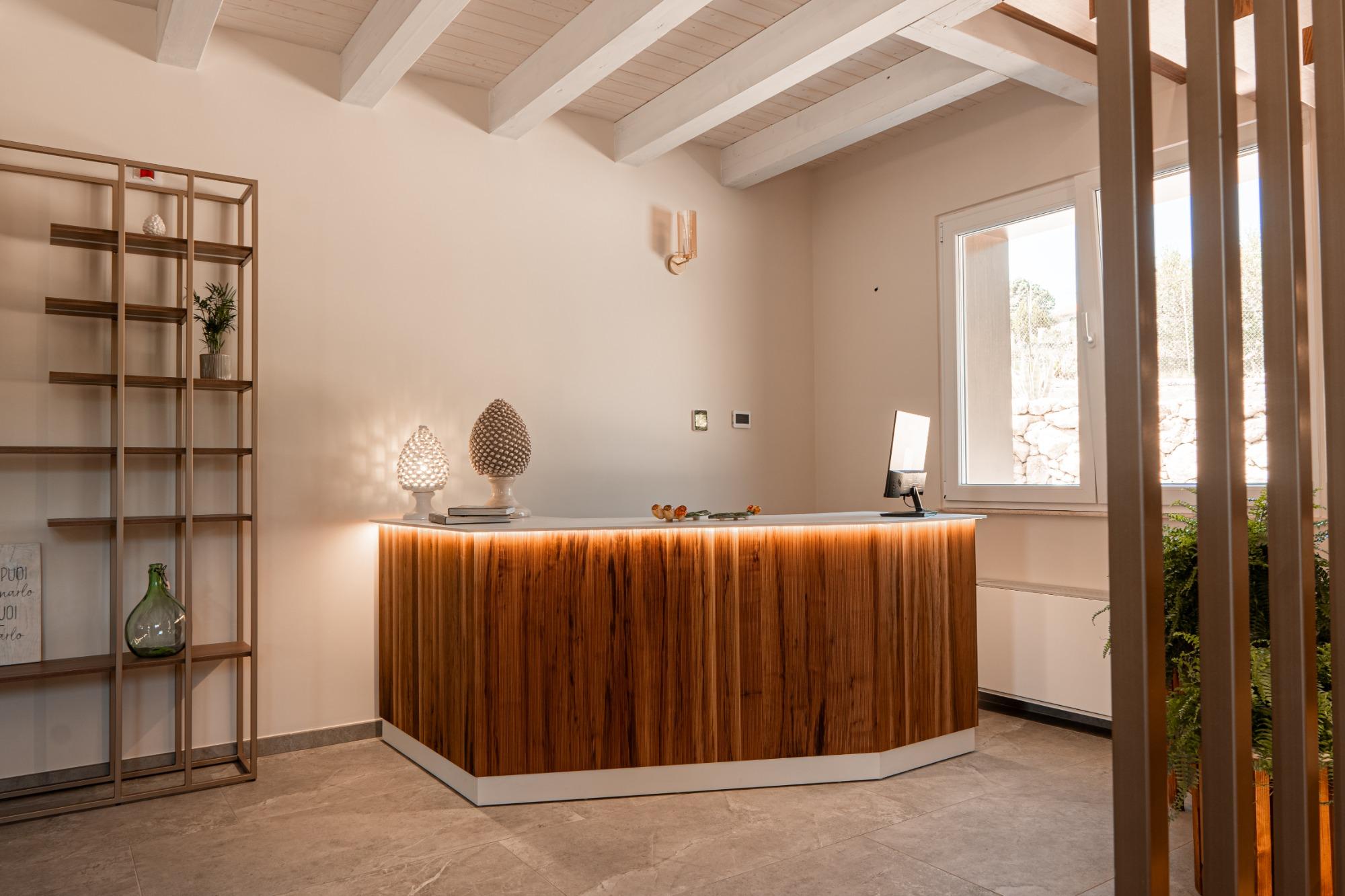 Manfredomus is a contemporary agritourism destination set in the tranquility of a Mediterranean landscape dotted with olive trees, prickly pears, and palms swaying in the breeze. The atmosphere is enhanced by the scents of rosemary and lavender, enveloping guests in a nurturing embrace of nature and well-being. The impressive yet understated natural stone walls create an oasis of peace where one can rediscover the joy of silence.