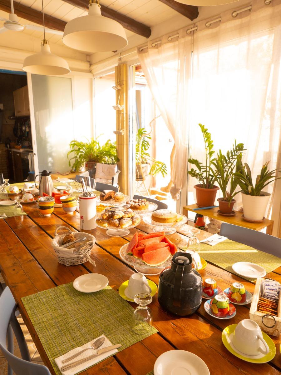 Besides the B&B service, which includes abundant breakfasts made with typical Sicilian products, homemade bread, organic jams and seasonal fruits, Angela, the homeowner, also arranges dinners upon reservation, featuring the freshest fish purchased directly from local fishermen, vegetables and other organic products from her own production. Of course, the cuisine is typically Mediterranean and deliciously Sicilian.