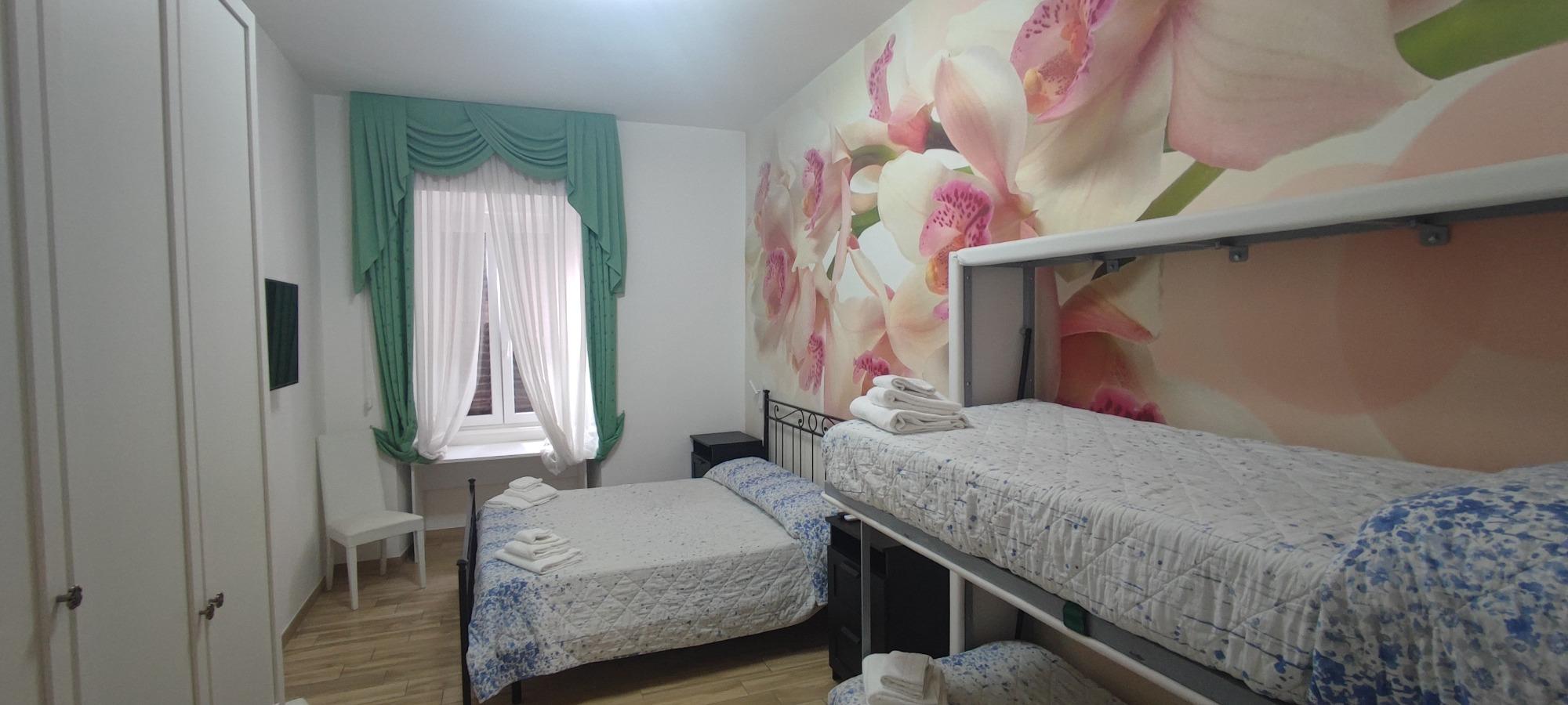 À seulement 200 mètres des Musées du Vatican et de la station de métro Ottaviano de la ligne A, cet établissement élégant se situe dans un majestueux palais umbertin de la fin du XIXe siècle. Il propose deux spacieuses chambres quadruples, chacune équipée d'une salle de bain privative, d'un lit double et d'un solide lit superposé. Les espaces, décorés avec goût et attention aux détails, offrent tous les conforts modernes, y compris une télévision intelligente de 40 pouces avec accès à Netflix, un Wi-Fi haut débit et des codes électroniques pour un check-in autonome facile.