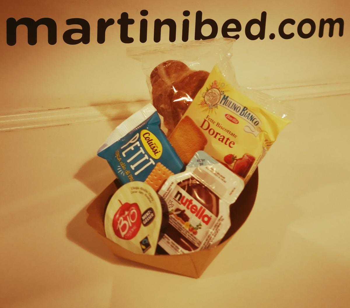 Welcome to Martini Bed! We are pleased to offer you a delicious in-room breakfast, consisting of a variety of single-serving delicacies such as biscuits, toast, organic jam, Nutella, croissants, honey, cereal, milk, and fruit juices. Additionally, to satisfy your coffee or tea cravings, you will find an espresso machine, tea, and herbal infusions available for you in the common area, which is open 24/7. Enjoy your breakfast in comfort and tranquility to start your day off on the right foot!
