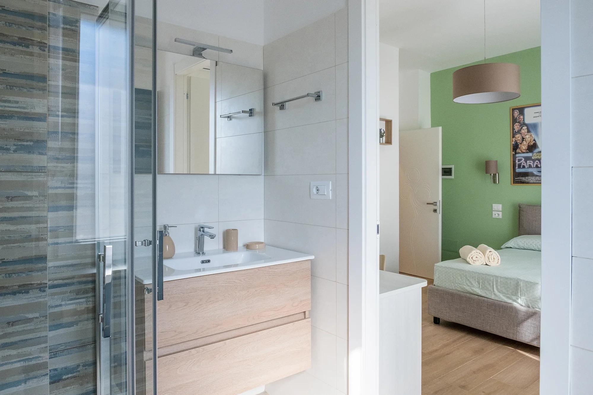Un’opzione interessante, disponibile su richiesta, è la possibilità di prenotare un’area indipendente della casa: due camere comunicanti con cucina privata e terrazzo panoramico, ideale per famiglie o piccoli gruppi. Il parcheggio interno, gratuito e riservato, completa la proposta.