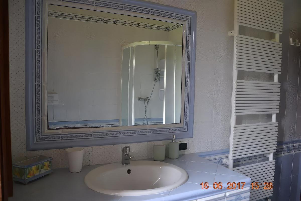 The pool is equipped with every comfort: sun loungers with towels, shower, and bathrooms.