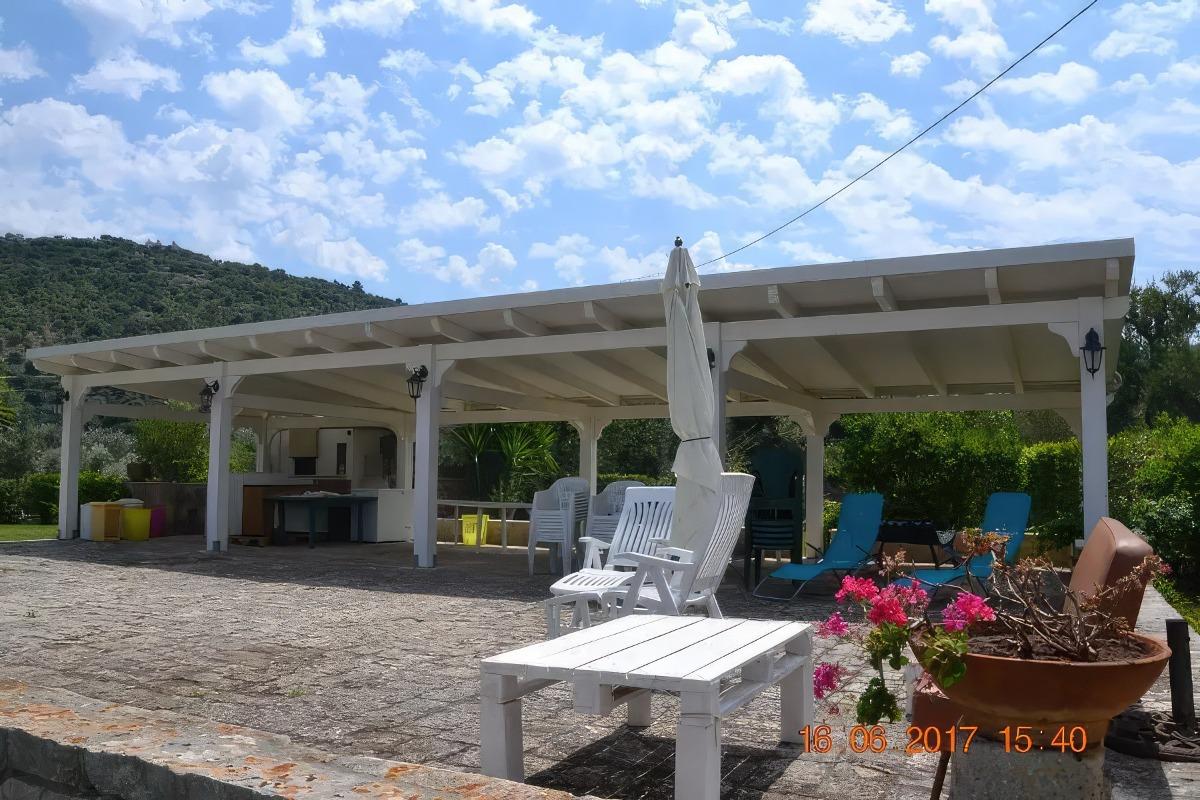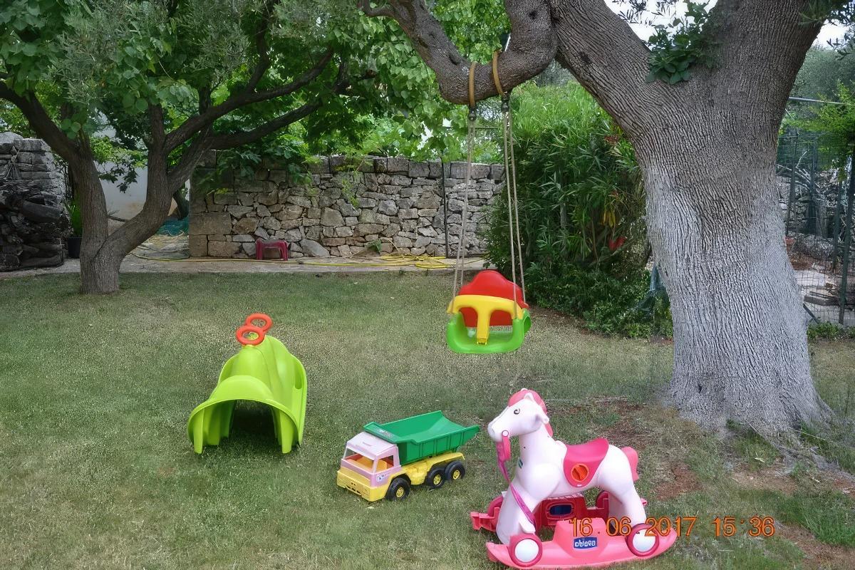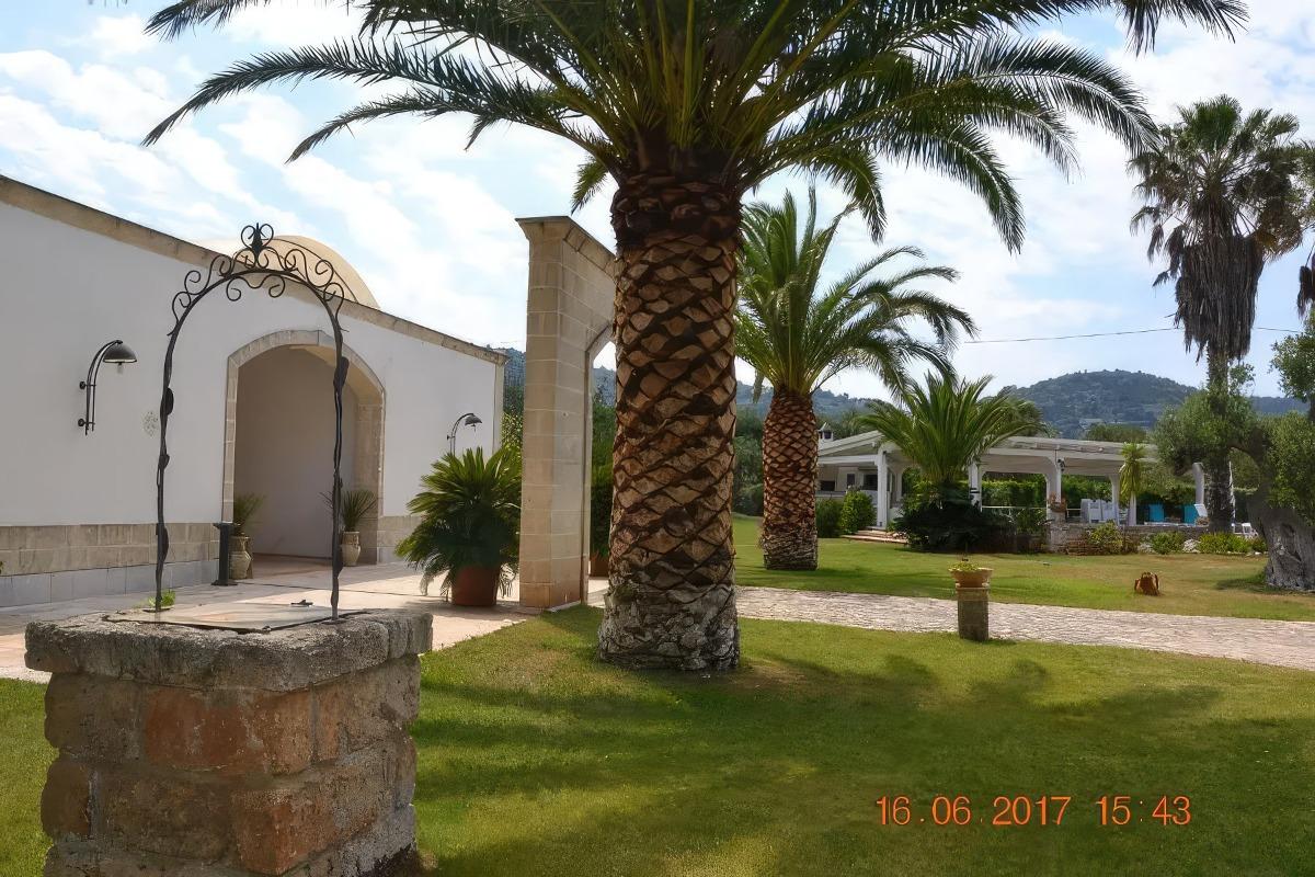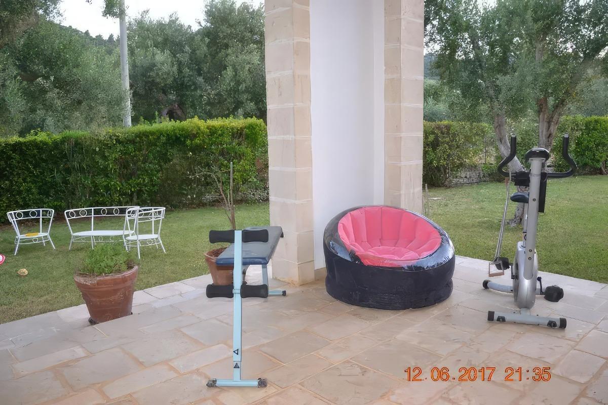For fitness enthusiasts, the spacious outdoor area is equipped with a covered veranda with a "mountain" view dedicated to hosting gym equipment; enriching the back of the Masseria is direct contact with nature: English-style lawn, ancient carob tree, and large orchard.