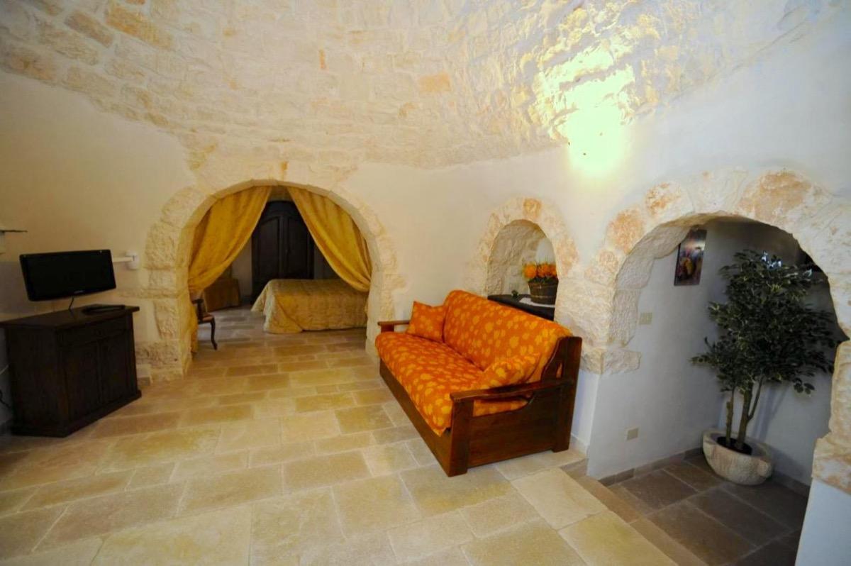Bed & Breakfast Masseria Montanaro is a beautiful structure located in the heart of an ancient valley in Puglia, famous for its high concentration of trulli. It is less than 2. 5 km from the historic center of Cisternino, one of the most beautiful villages in Italy. Masseria Montanaro offers a family welcome for a pleasant and relaxing vacation. It has 4 rooms, including 2 doubles with private bathroom and color TV and 2 doubles with shared bathroom and color TV (on request it is possible to add 2 extra beds in the living room). Guests can use a small sitting room with TV and minibar and an outside patio ventilated on warm evenings. Cleaning and linen change are done daily in every Trullo. In winter, the Trulli offer a warm and cozy atmosphere, while in summer they remain cool and pleasant. Breakfast is served in the morning in the charming atmosphere of the Trulli Alcova, with a view of the surrounding olive trees. During the day, guests can enjoy the reserved and enchanting panoramic terrace, for maximum relaxation.