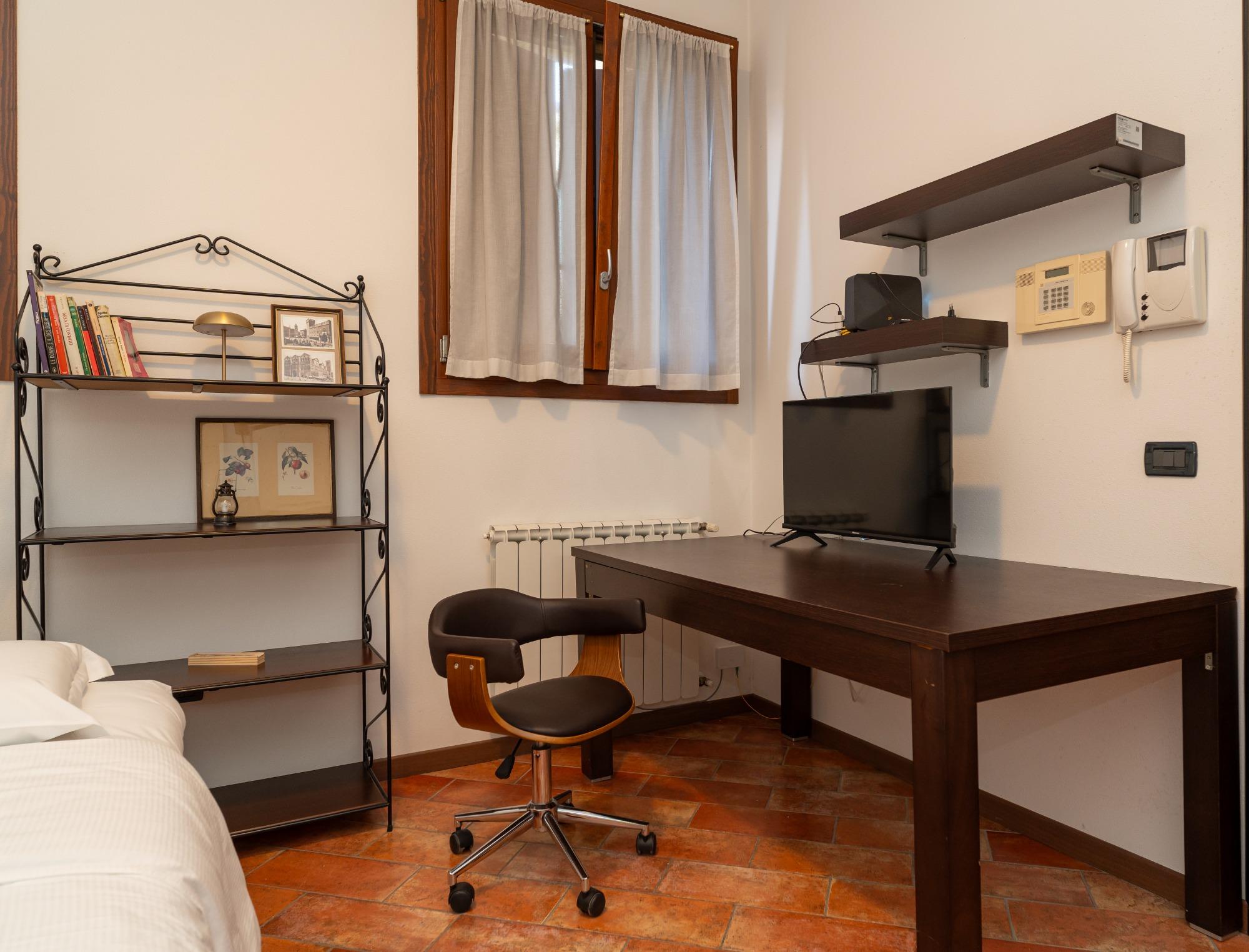 Nel cuore del centro storico di Ferrara, questo monolocale accogliente offre un soggiorno comodo e silenzioso, a pochi passi da Piazza Ariostea e dal Corso della Giovecca. La zona è ben servita da negozi, ristoranti e trasporti, ma conserva un’atmosfera tranquilla ideale per rilassarsi dopo una giornata in città. Perfetto per soggiorni di piacere, lavoro o studio, l’appartamento è progettato per garantire privacy e funzionalità. Dispone di una luminosa zona giorno con letto matrimoniale e angolo relax, cucina abitabile attrezzata, bagno privato con doccia, oltre a un pratico ripostiglio per bagagli o spesa. A disposizione degli ospiti anche uno spazio esterno dedicato al deposito delle biciclette, ideale per chi desidera esplorare Ferrara pedalando tra le sue vie storiche.