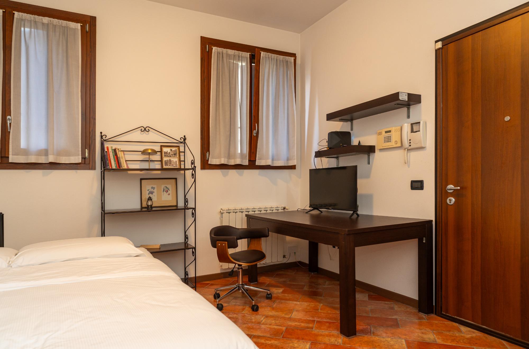 Nel cuore del centro storico di Ferrara, questo monolocale accogliente offre un soggiorno comodo e silenzioso, a pochi passi da Piazza Ariostea e dal Corso della Giovecca. La zona è ben servita da negozi, ristoranti e trasporti, ma conserva un’atmosfera tranquilla ideale per rilassarsi dopo una giornata in città. Perfetto per soggiorni di piacere, lavoro o studio, l’appartamento è progettato per garantire privacy e funzionalità. Dispone di una luminosa zona giorno con letto matrimoniale e angolo relax, cucina abitabile attrezzata, bagno privato con doccia, oltre a un pratico ripostiglio per bagagli o spesa. A disposizione degli ospiti anche uno spazio esterno dedicato al deposito delle biciclette, ideale per chi desidera esplorare Ferrara pedalando tra le sue vie storiche.