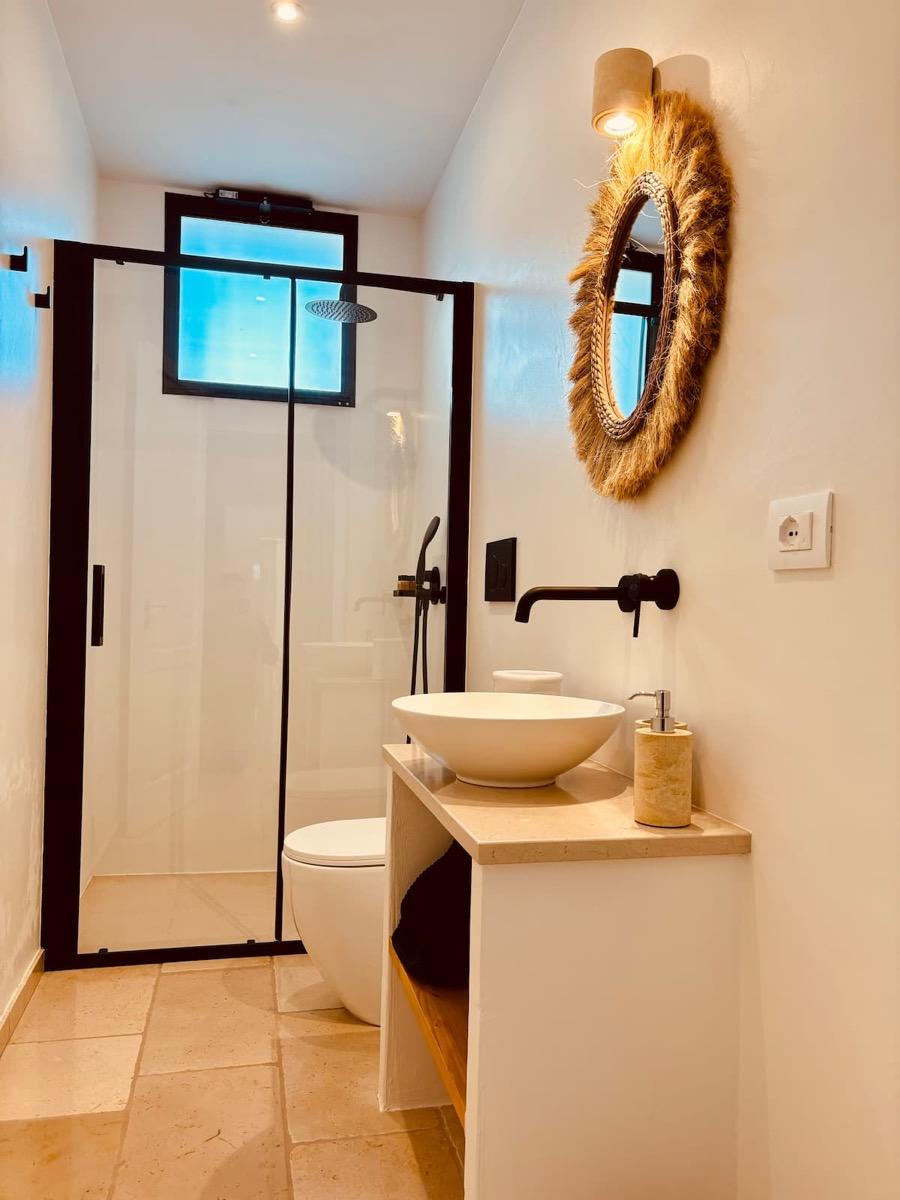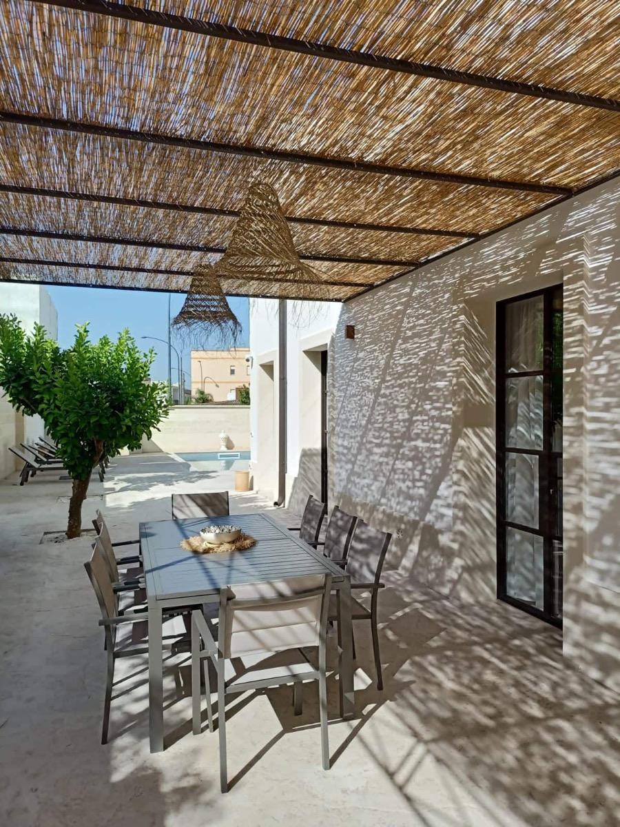 L'établissement dispose d'un vaste espace extérieur privé, agrémenté d'une piscine avec douches extérieures, d'une véranda équipée d'une table et de sièges pour des moments agréables en plein air, ainsi que d'un parking privé sur la propriété, garantissant calme et commodité aux visiteurs.
