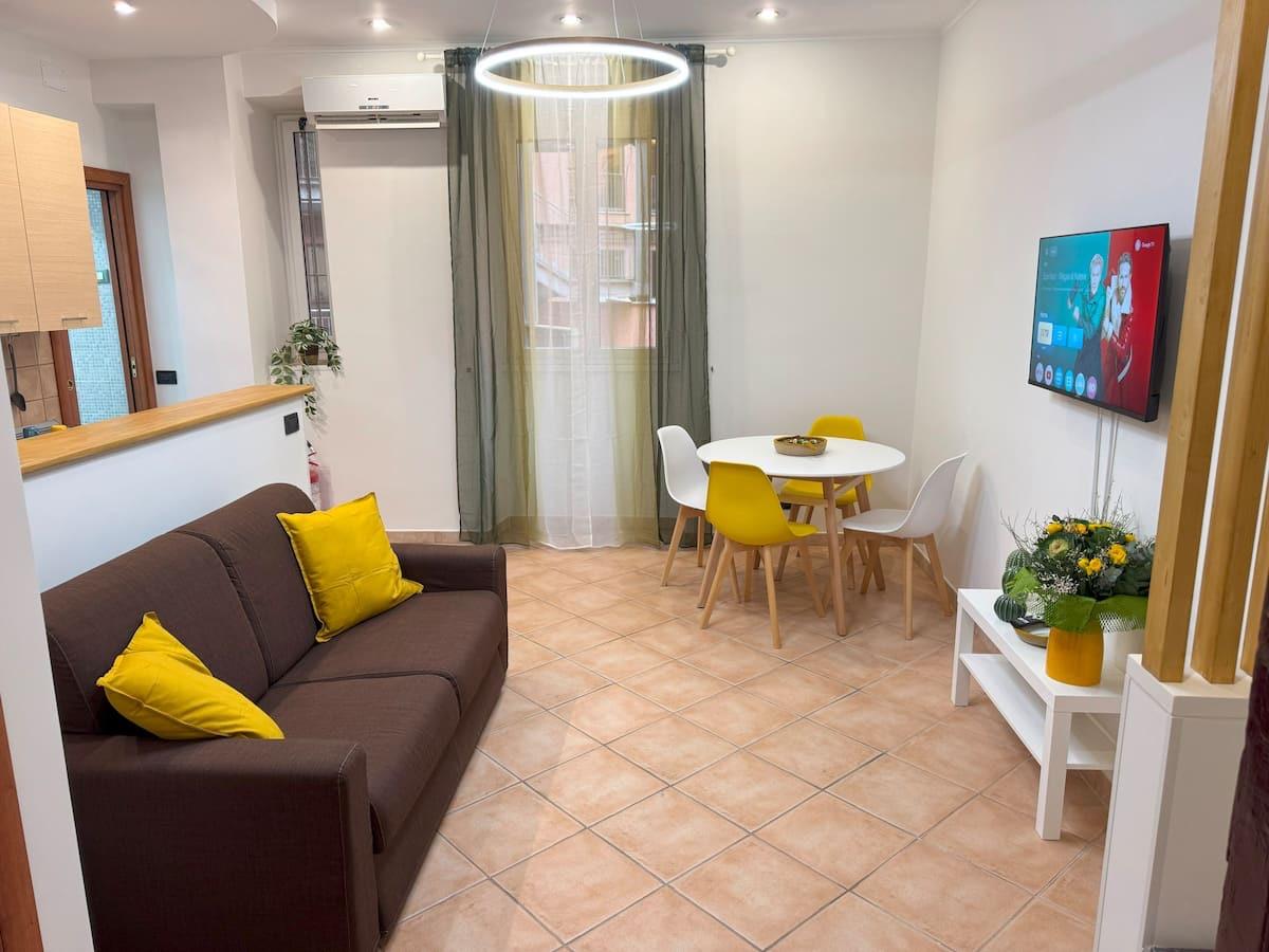 El apartamento se sitúa en el primer piso de un elegante edificio del siglo XIX, dentro de un tranquilo patio que evoca la atmósfera de un pequeño pueblo en el centro de la ciudad. Recientemente renovado, el espacio ha sido decorado con un estilo moderno y vibrante, enriquecido con detalles creativos que reflejan la personalidad de los anfitriones. Los ambientes están diseñados para ofrecer comodidad y funcionalidad: la sala cuenta con un cómodo sofá cama, televisión inteligente y una cocina pequeña completamente equipada para sentirse como en casa. La habitación principal es amplia, con un gran armario y una segunda televisión inteligente. El baño, accesible tanto desde la habitación como desde la sala, está equipado con ducha, lavadora y todos los servicios necesarios.