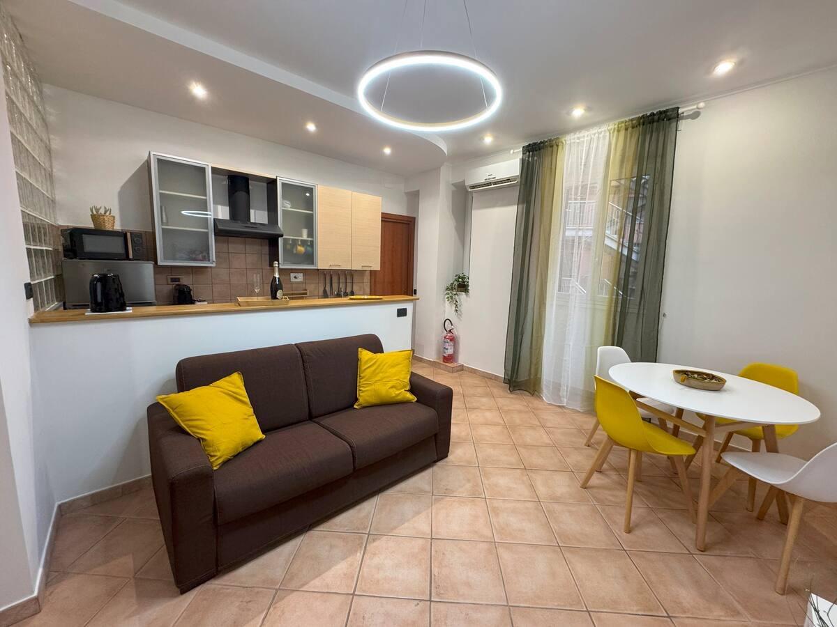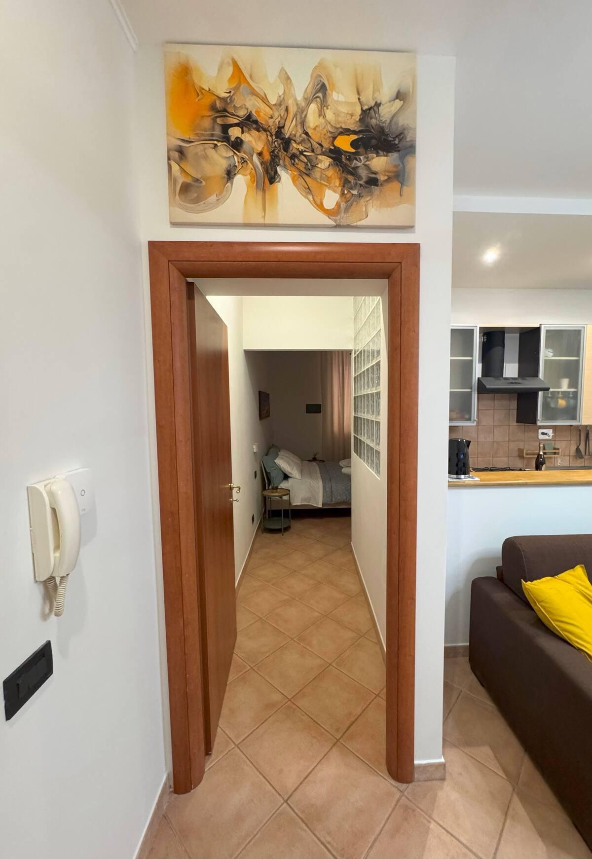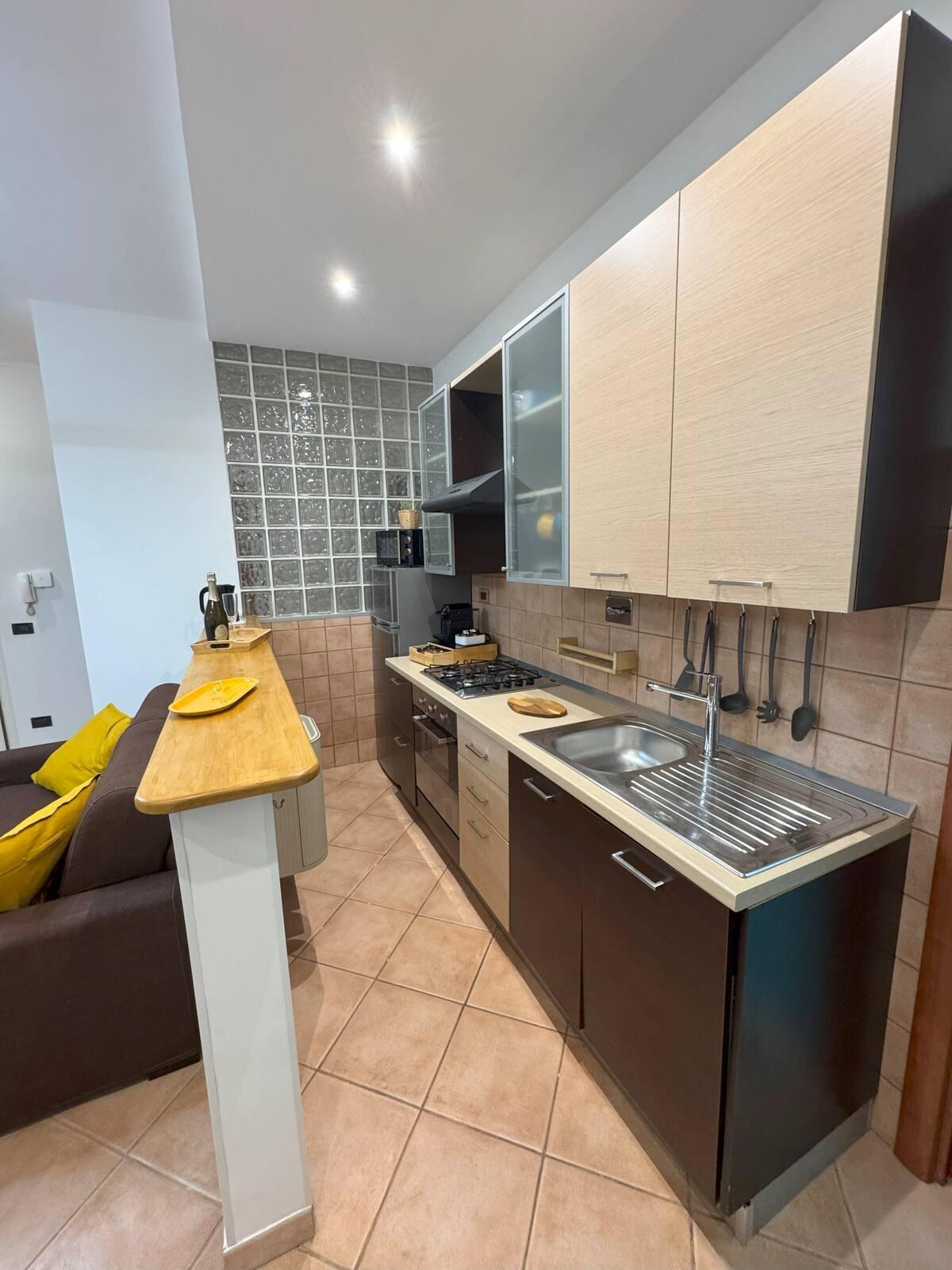 La conexión Wi-Fi de fibra y el aire acondicionado en cada espacio hacen que el apartamento sea ideal también para estancias de trabajo o largos fines de semana de exploración. Las ventanas dan al interior, garantizando tranquilidad y relajación incluso en los días más ajetreados.
