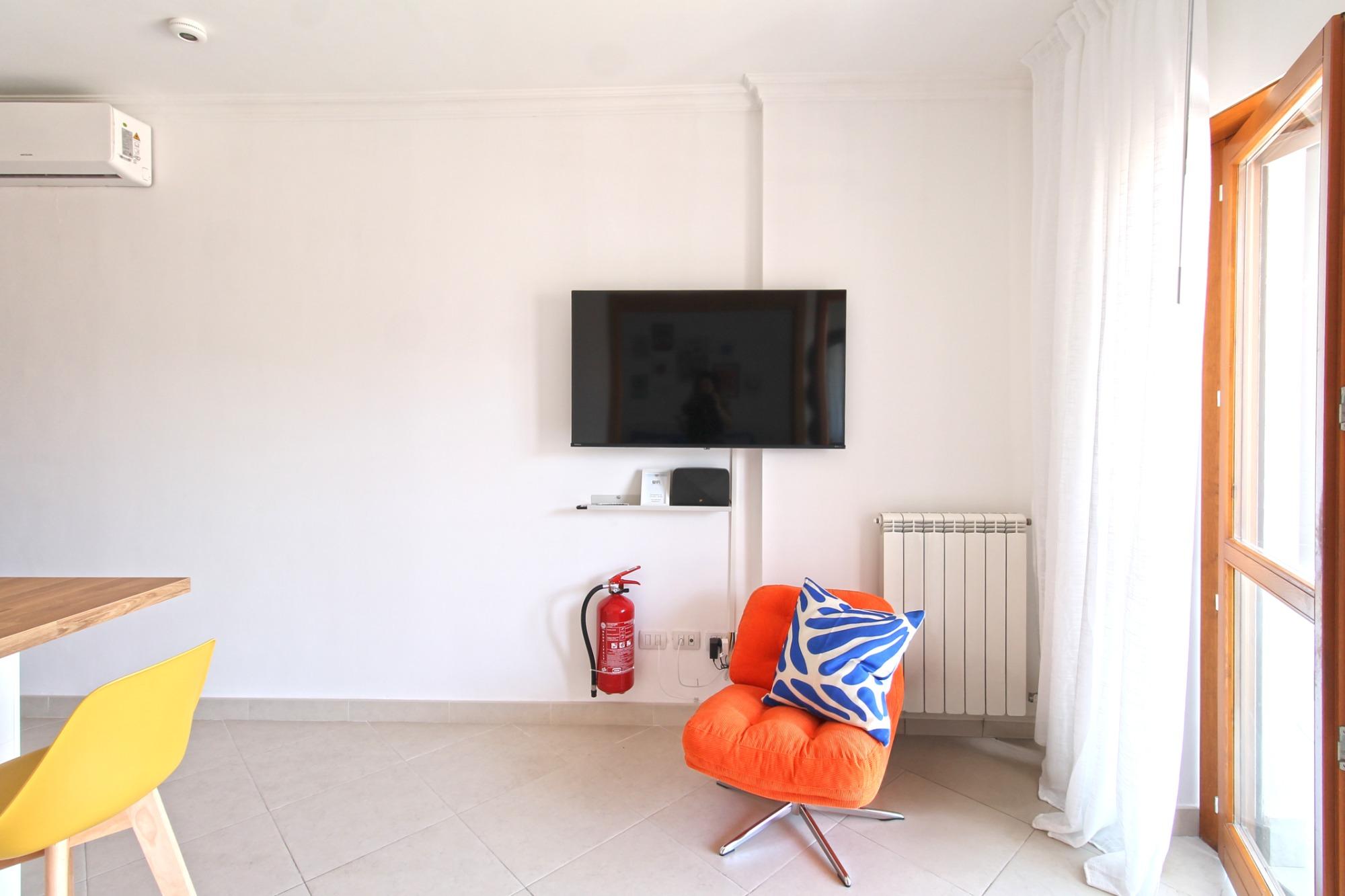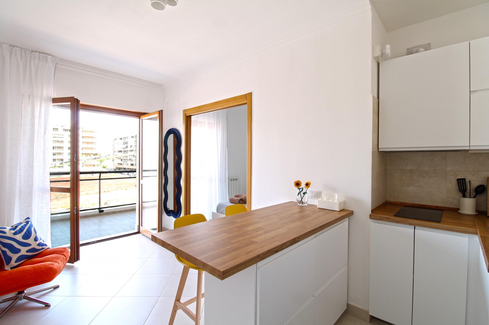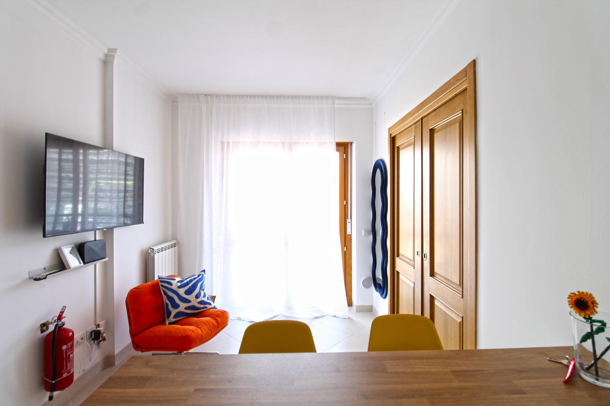 Il Monolocale 19 accoglie gli ospiti in un ambiente vivace, funzionale e curato nei dettagli, ideale per coppie, viaggiatori singoli o trasferte di lavoro. L’appartamento dispone di una zona notte separata dal soggiorno con angolo cottura, offrendo un’atmosfera intima e confortevole, impreziosita da uno stile pop che dona colore e personalità agli spazi.