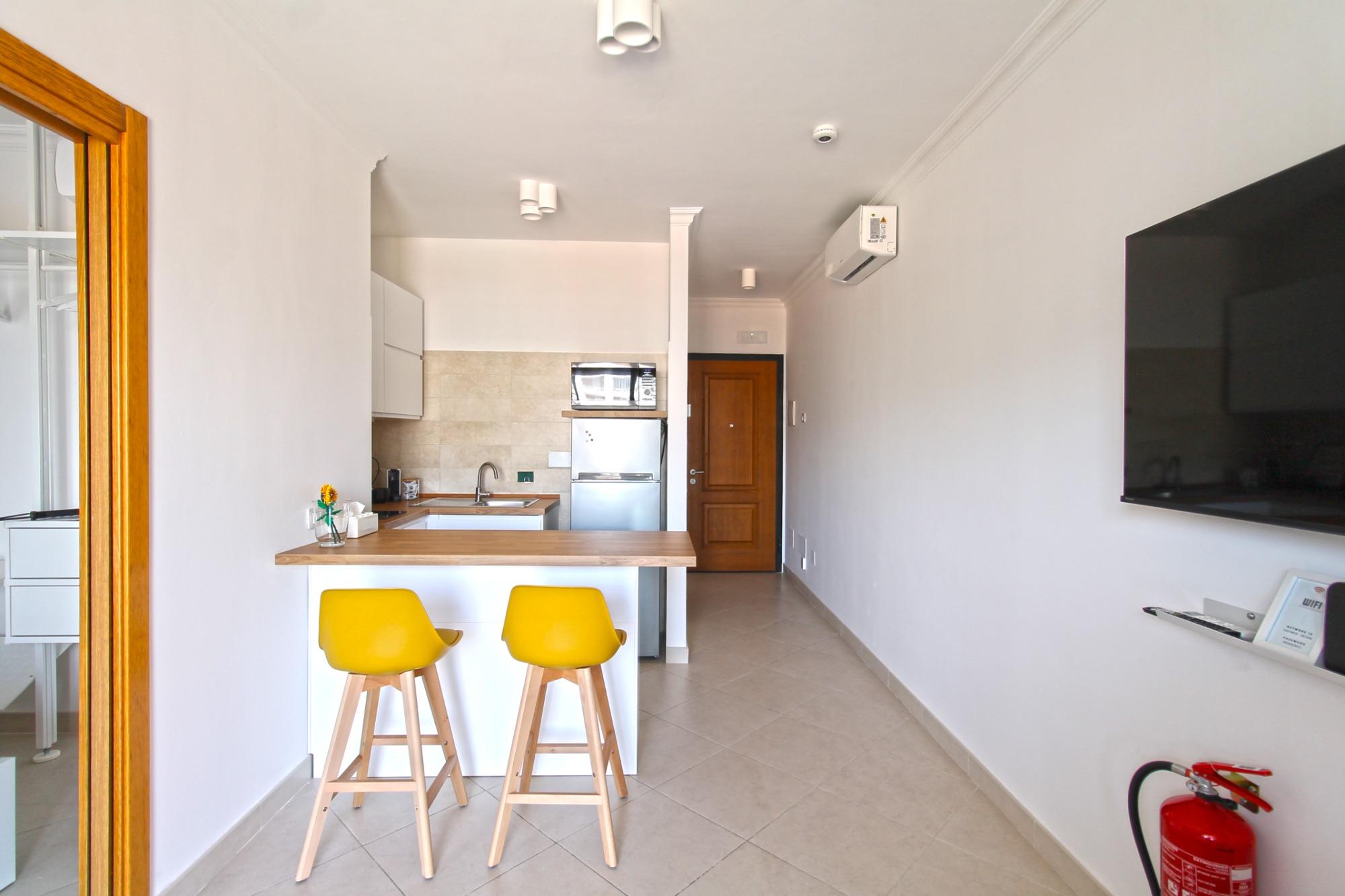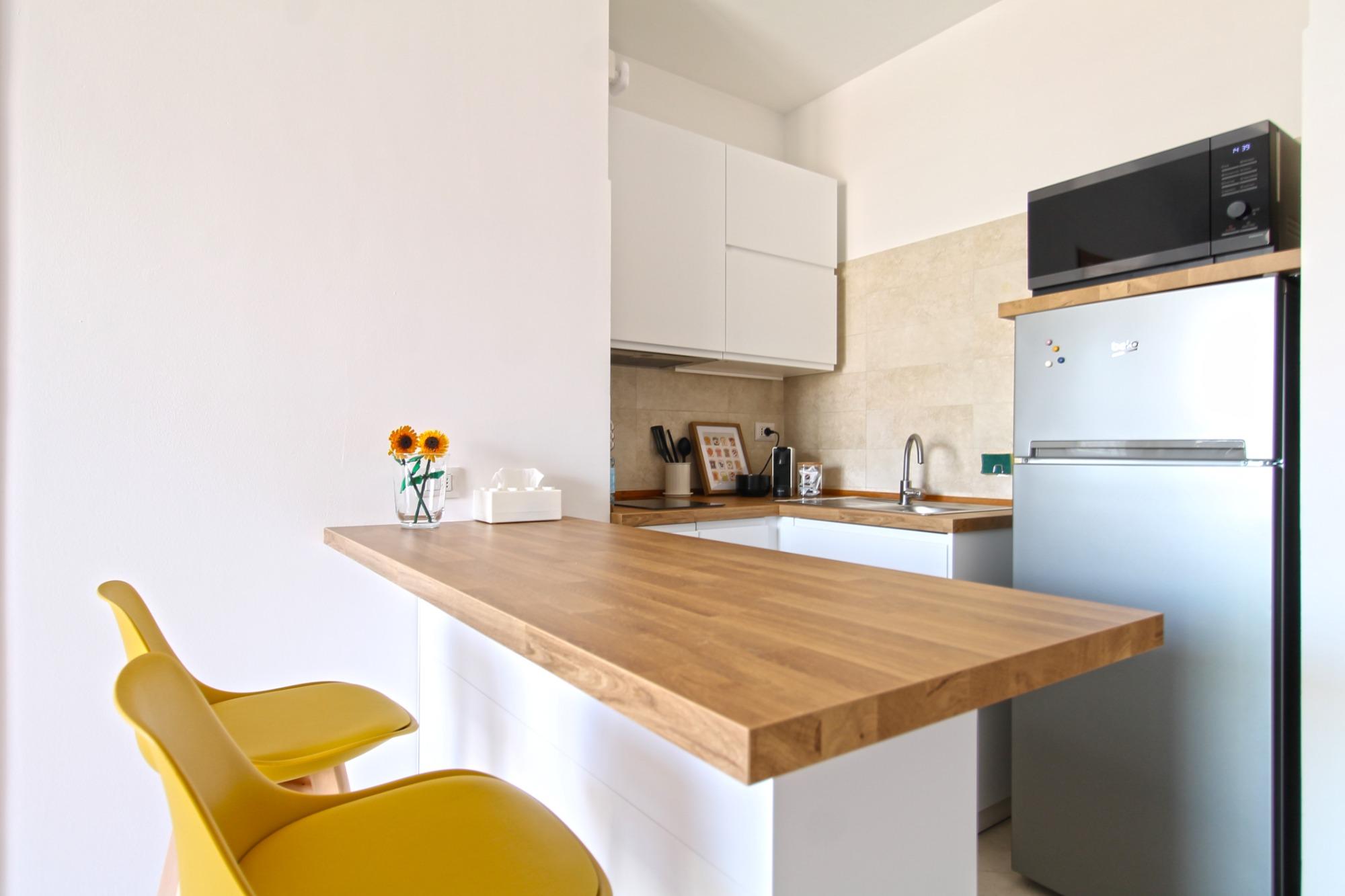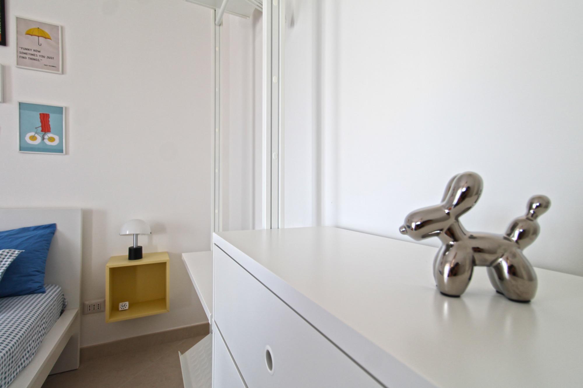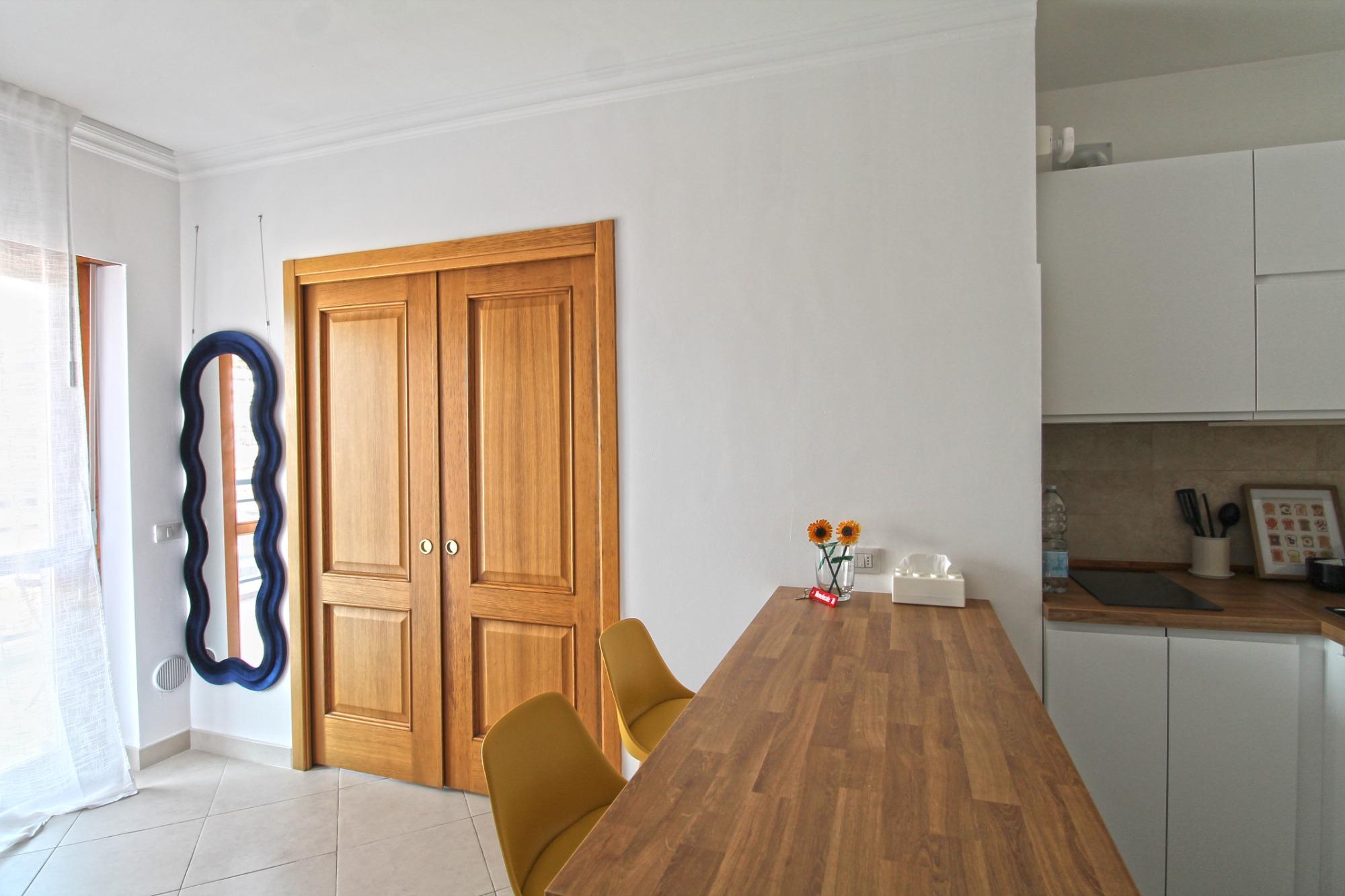 Il Monolocale 19 accoglie gli ospiti in un ambiente vivace, funzionale e curato nei dettagli, ideale per coppie, viaggiatori singoli o trasferte di lavoro. L’appartamento dispone di una zona notte separata dal soggiorno con angolo cottura, offrendo un’atmosfera intima e confortevole, impreziosita da uno stile pop che dona colore e personalità agli spazi.