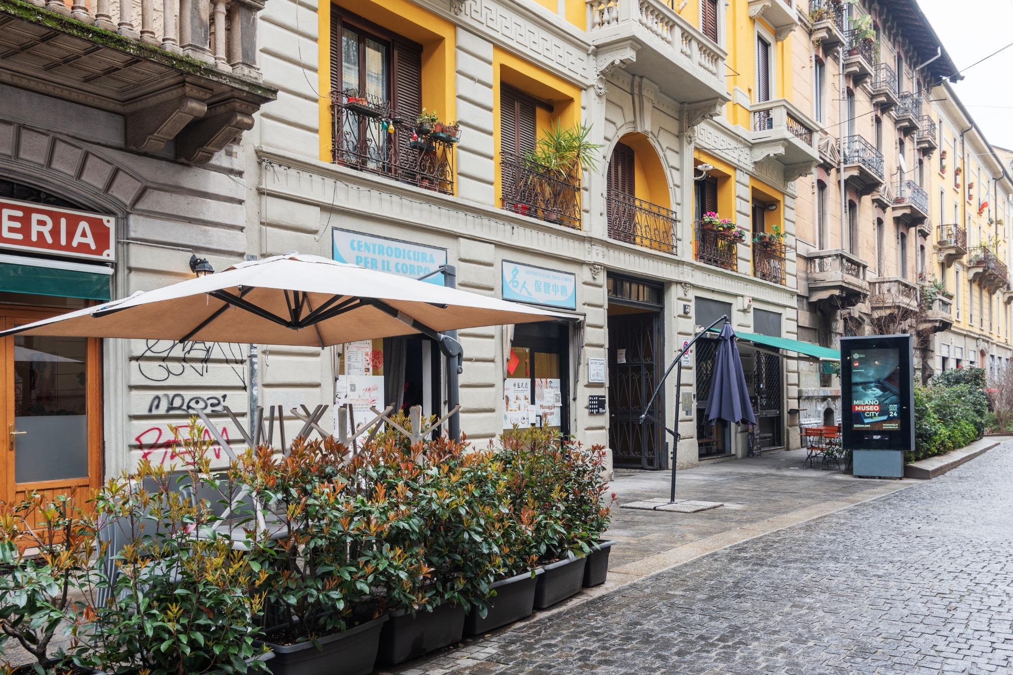 The Sarpi studio apartment is located in the vibrant heart of Milan, on Paolo Sarpi Street, one of the city's most lively and distinctive streets. The neighborhood is full of charming restaurants, shops, and traditional venues, and it is both safe and well-connected by public transport: bus lines 43 and 57 stop right outside, while the Gerusalemme metro station is about a ten-minute walk away. Garibaldi Station is approximately twenty minutes away.