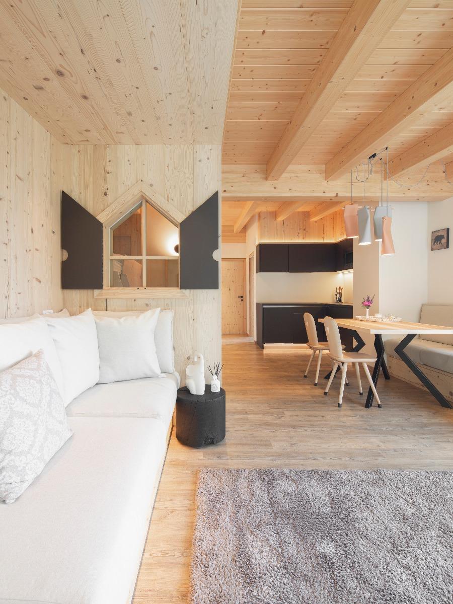Staying at Montanara Chalet is much more than just a vacation. Here you will be captivated by the beauty of the place and its infinite views. The house, with its modern design, will give you a thousand different emotions. The furnishings have been carefully chosen, using the natural colors of our mountains, and the scent of wood and forest will surround you.