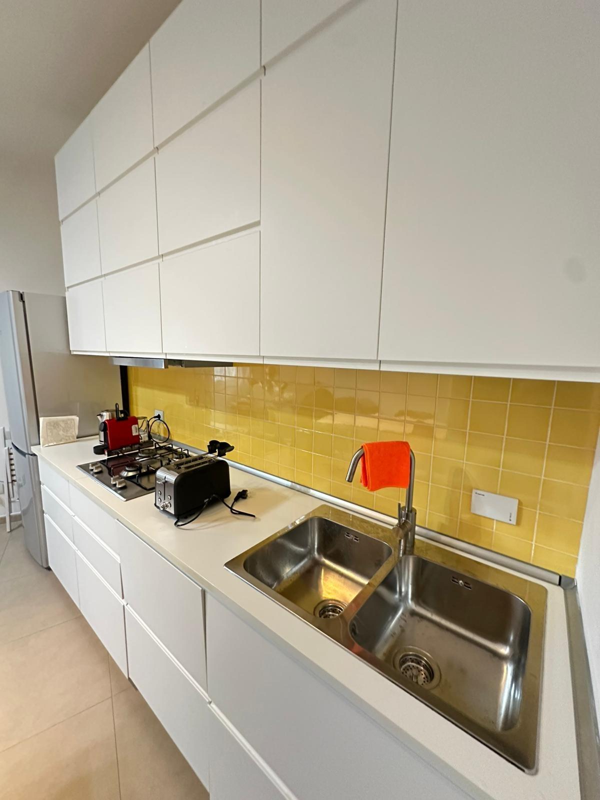 The living room is designed to suit all your needs, whether you want to relax, work, or enjoy a Netflix marathon thanks to the two cutting-edge smart TVs, equipped with ultra-fast Wi-Fi. The kitchen, modern and fully equipped, invites you to take your time and enjoy a great meal, while the bathroom, with its bathtub and elegant finishes, offers the perfect space to unwind.