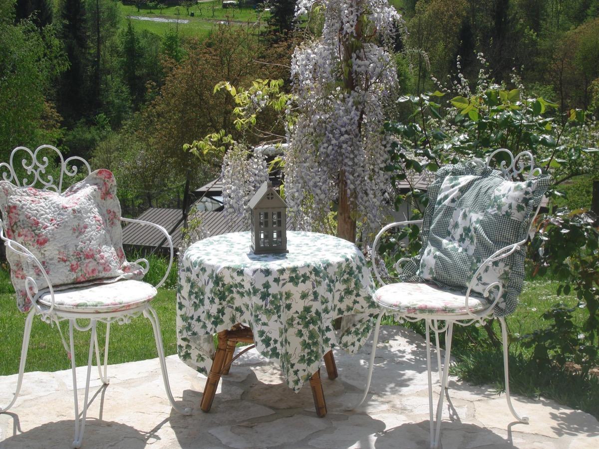 Pendant les mois les plus chauds, tu pourras profiter de ton petit-déjeuner en plein air, immergé dans les parfums des fleurs du jardin, tout en admirant une vue splendide sur la vallée.