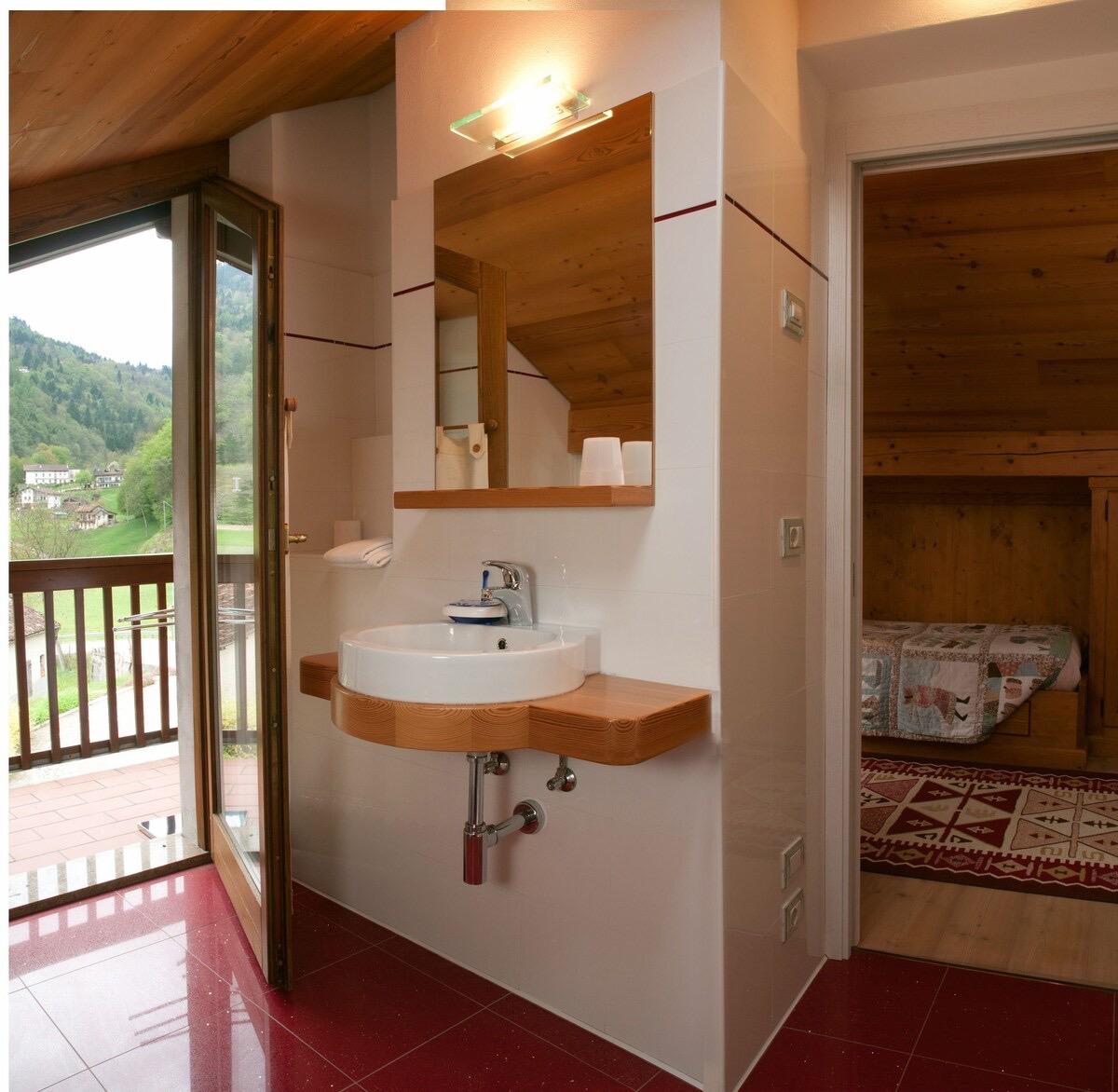 Nos chambres doubles sont équipées de parquet en bois et d'une salle de bain privée avec douche. De plus, nous offrons la télévision par satellite, une connexion wifi et une vue panoramique magnifique sur le Parc national des Dolomites bellunoises, la pittoresque ville médiévale de Feltre et la majestueuse Basilique San Vittore, illuminée la nuit.