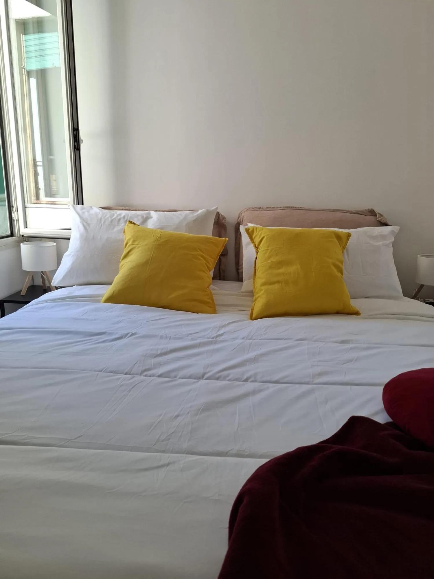 La habitación principal está decorada de manera sencilla y con atención a los detalles, ofreciendo un oasis de tranquilidad en el bullicioso corazón de la ciudad. El baño es moderno y cuenta con una amplia ducha, ideal para refrescarse después de un día de visitas.