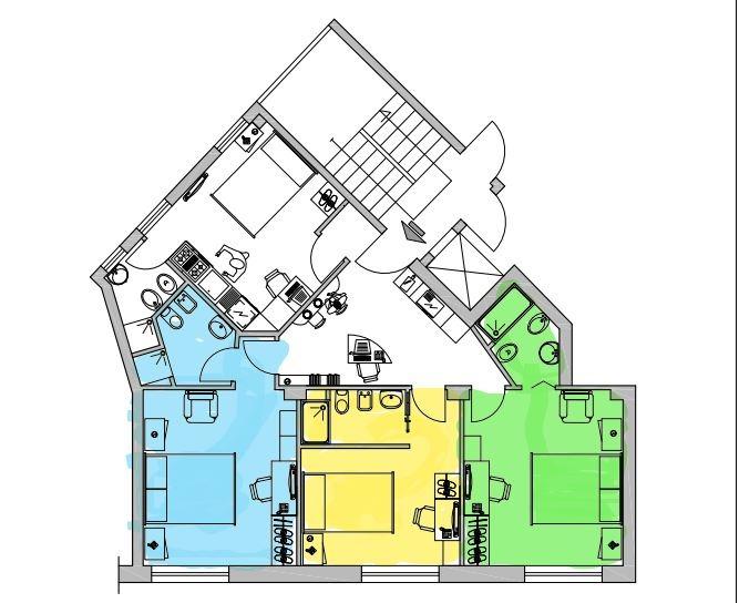 Stanza con letto matrimoniale, bagno con doccia doppia, piccola scrivania per laptop, connessione internet 2GB