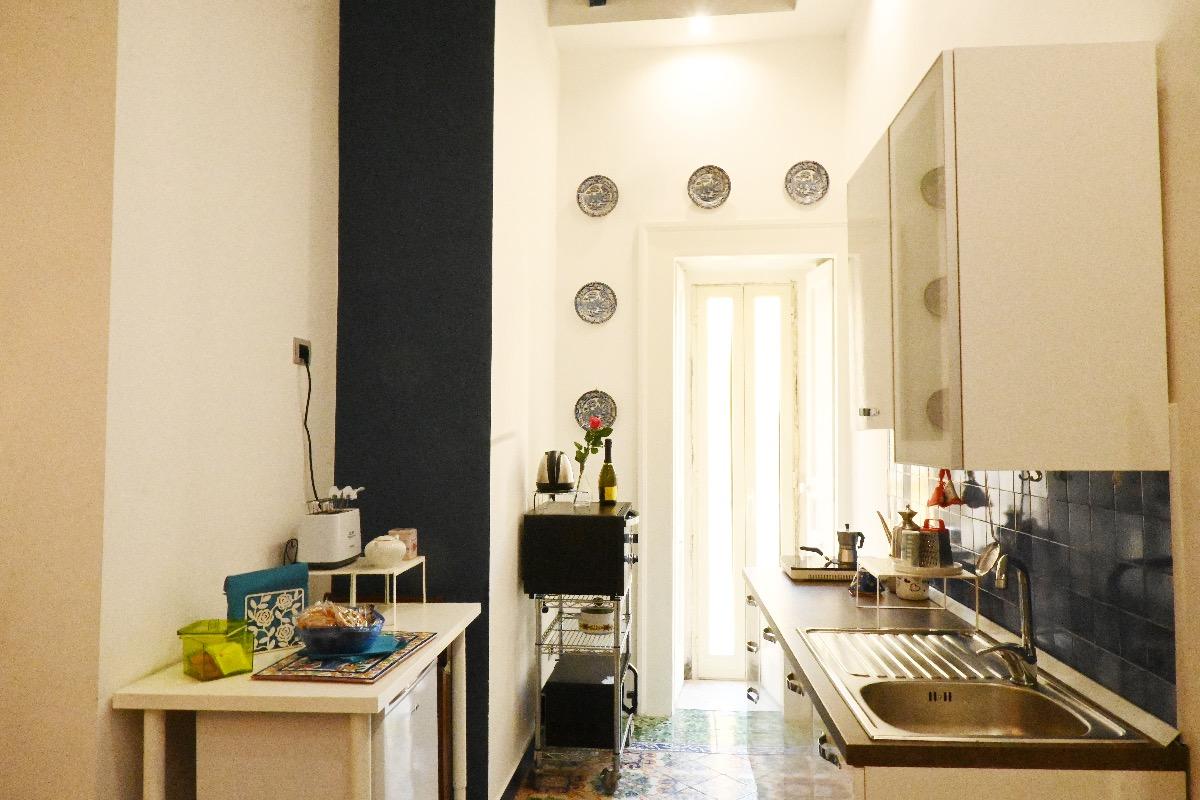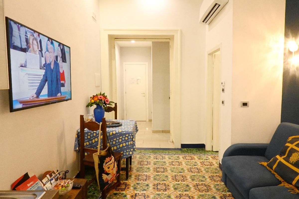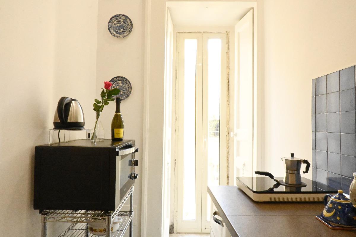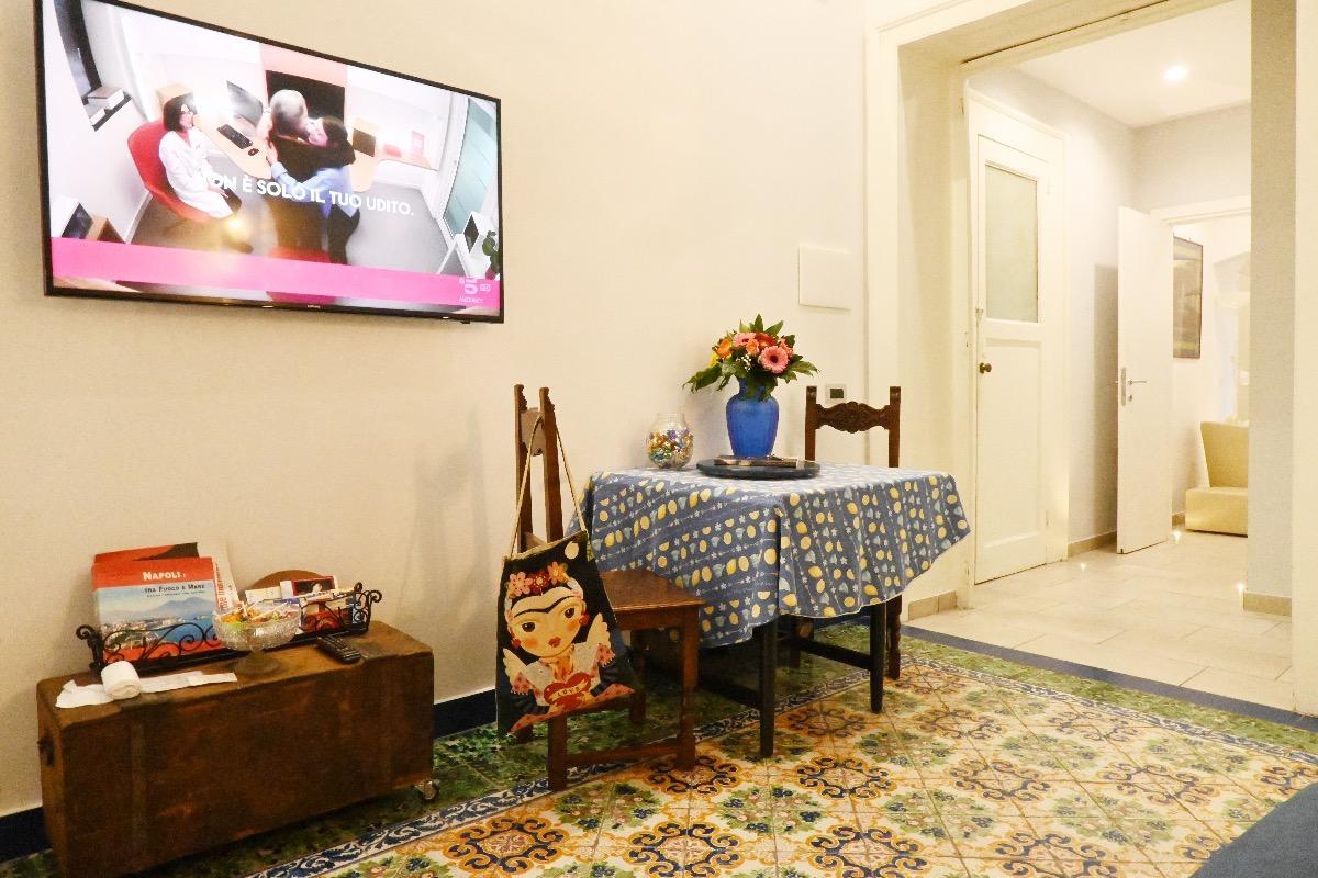 Appartamento luminoso con graziosissimo affaccio sui tetti di Napoli. Sono preseti una camera matrimoniale, un bagno privato, una cucina e un salottino in cui riposarsi e sentirsi a casa.
