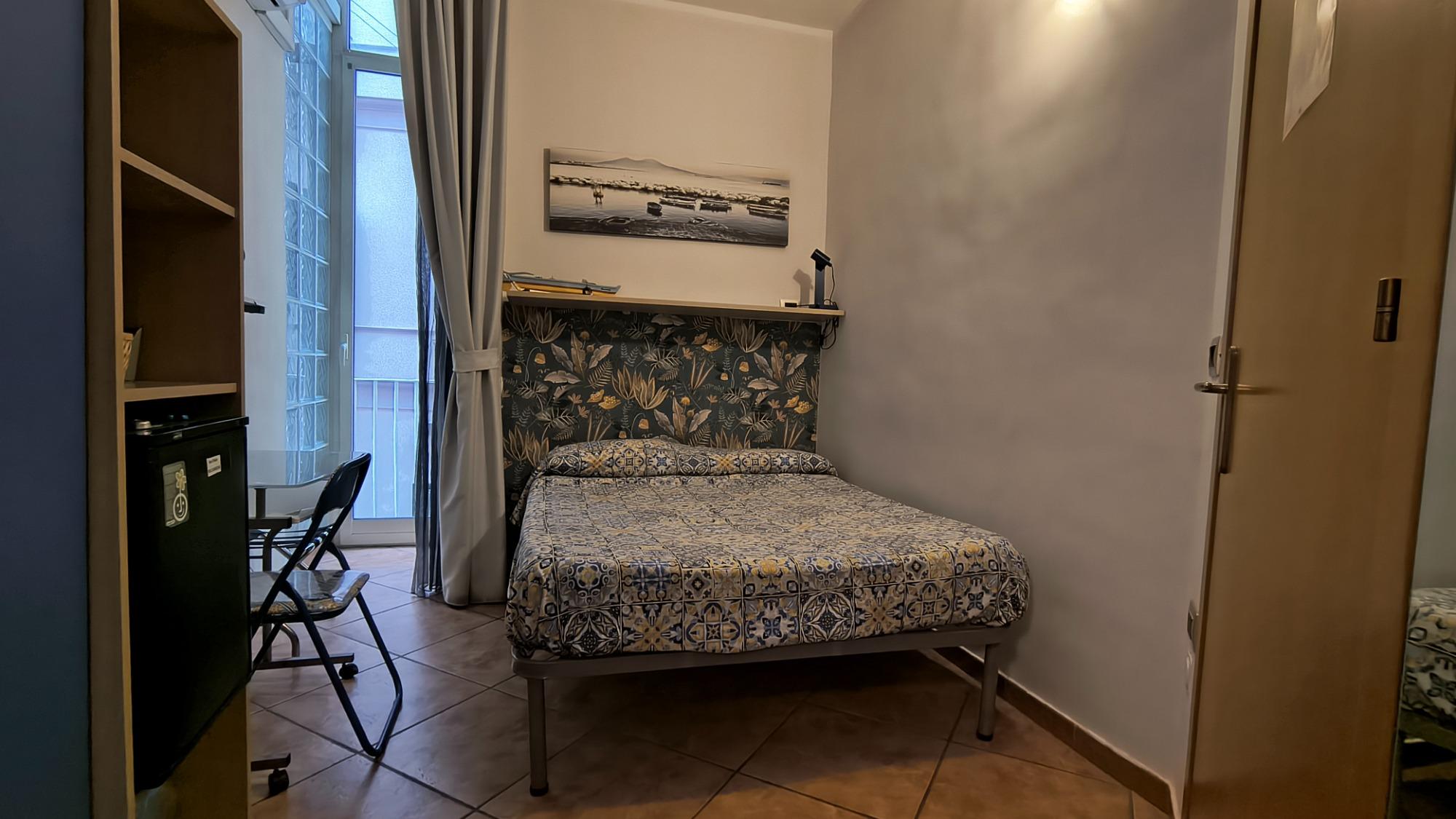 Vivace ed accogliente nella sua tonalità di blu offre 1 letto matrimoniale alla francese (140 cm larg.), bollitoi per acqua e latte, selezione di tè e caffè, piccolo balcone con vista su via Chiaia, bagno privato con doccia, prodotti da bagno, asciugacapelli, tenda ignifuga, riscaldamento autonomo caldo/freddo,TV a schermo piatto, connessione Internet wifi gratis.