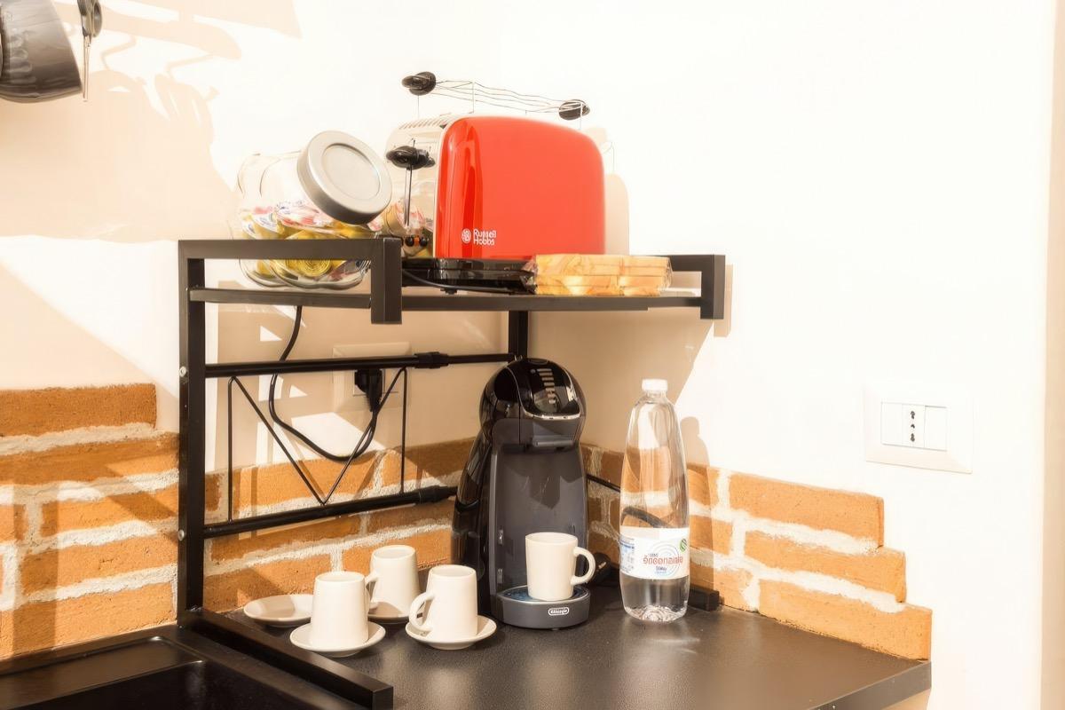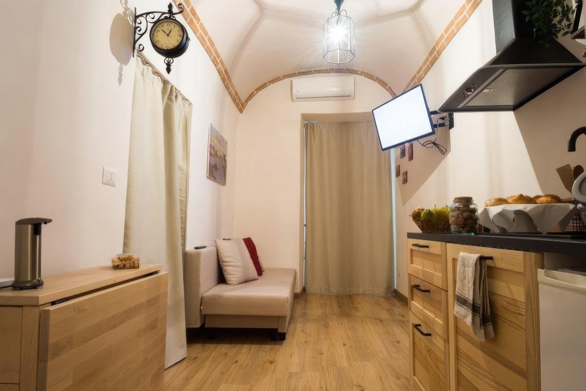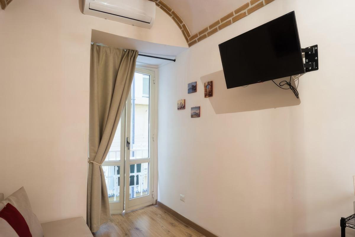 Ubicado dentro de un edificio histórico en Nápoles, tendrás acceso a un apartamento completo que consta de un amplio dormitorio con un armario, un baño con ducha y secador de pelo, y una cocina/sala de estar con sofá cama y un armario empotrado. La cocina y el baño están equipados con todas las comodidades necesarias, incluyendo lavadora, aire acondicionado, nevera, horno, cafetera de cápsulas y un televisor inteligente con conexión a Netflix incluida.