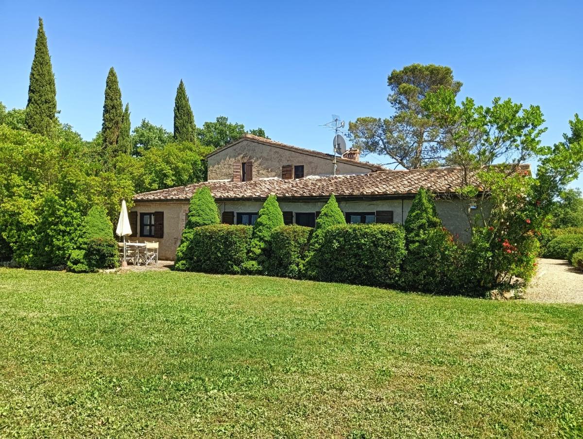 Die Villa L'Aia, auf dem Landgut, bietet Privatsphäre und Ruhe mit einem Wohn-/Küchenbereich, einem großen Wohnzimmer mit Kamin und Panoramafenster, zwei Doppelzimmern, einem Kinderzimmer und drei Badezimmern sowie einem großen privaten Außenbereich.