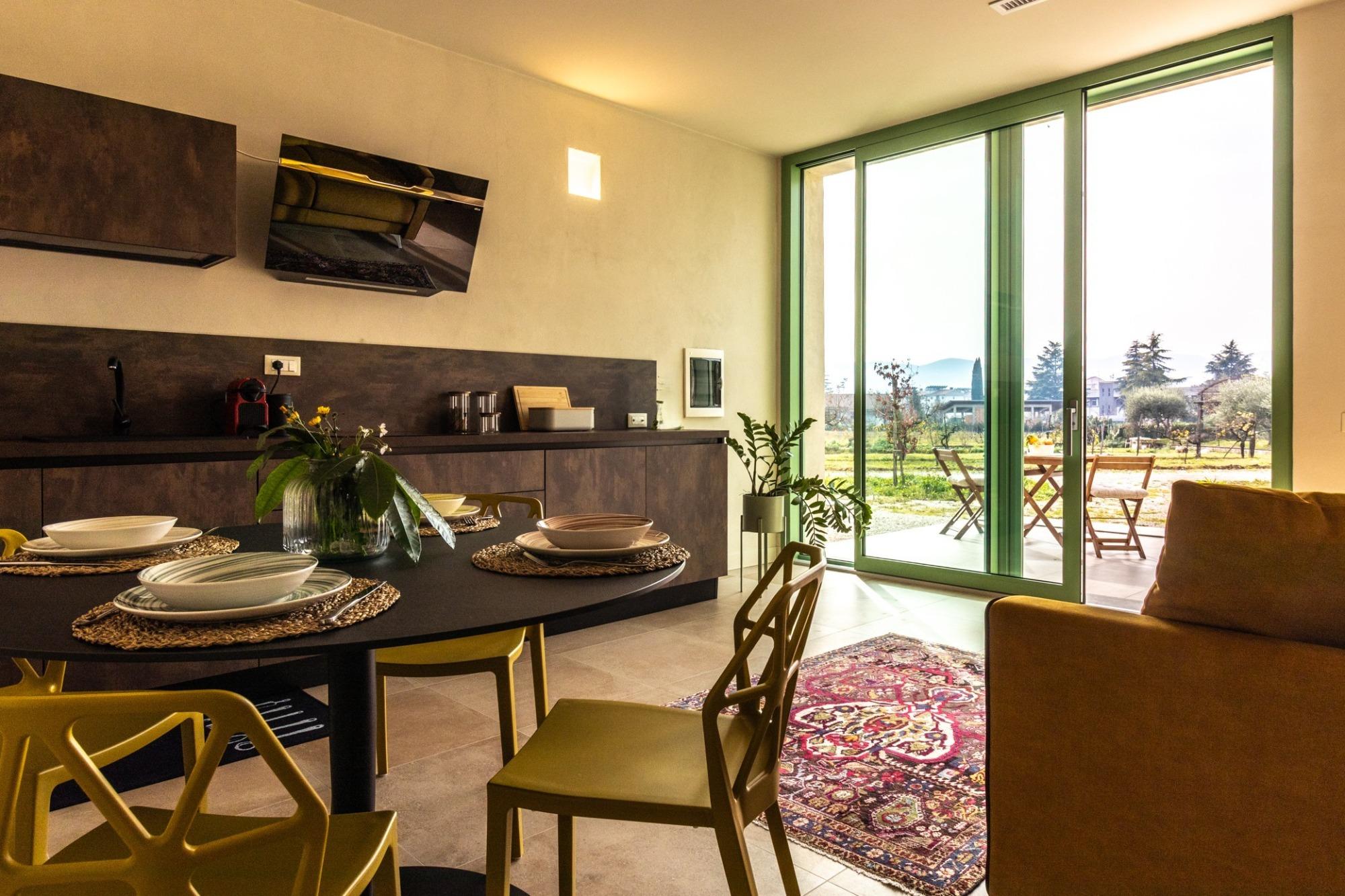 Inserito in un contesto residenziale elegante e riservato, composto da tre villette indipendenti di recente realizzazione, Nicolò e gli Alberi Villino C rappresenta una soluzione ideale per chi cerca relax, comfort e privacy a pochi minuti dal centro di Rieti. La costruzione, moderna e realizzata secondo criteri antisismici ed energeticamente efficienti, si distingue per ambienti curati, luminosi e funzionali. Gli interni offrono spazi armoniosi e ben organizzati: la zona giorno accoglie una cucina completamente attrezzata, un’area pranzo conviviale e un comodo soggiorno pensato per il relax. Le camere sono progettate per garantire un riposo ottimale, grazie a materassi Dorelan con topper, e risultano adatte anche a famiglie con bambini. All’esterno, la villetta è circondata dal verde e dispone di un giardino ampio e ben fruibile, oltre a una terrazza privata ideale per trascorrere momenti all’aria aperta. La vista sulle montagne e sul paesaggio circostante contribuisce a creare un’atmosfera distensiva e piacevole. Completano l’offerta un accesso riservato, un ingresso indipendente e parcheggio privato gratuito. La posizione consente inoltre di raggiungere rapidamente servizi essenziali e collegamenti, rendendo il soggiorno pratico oltre che rilassante.