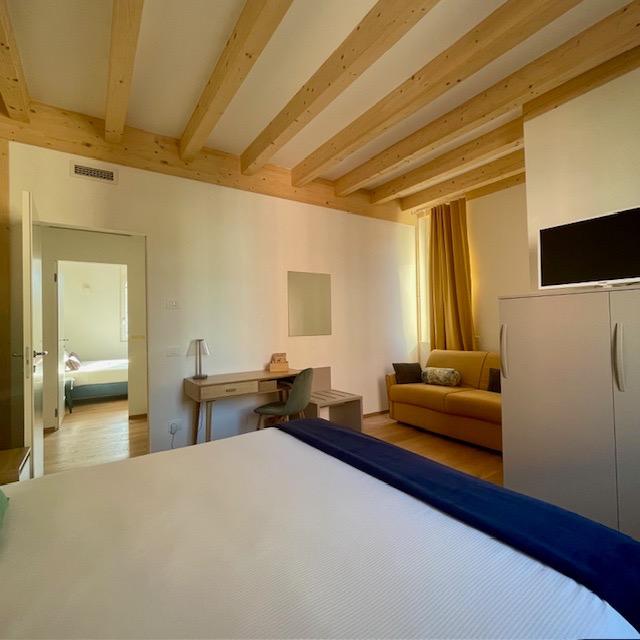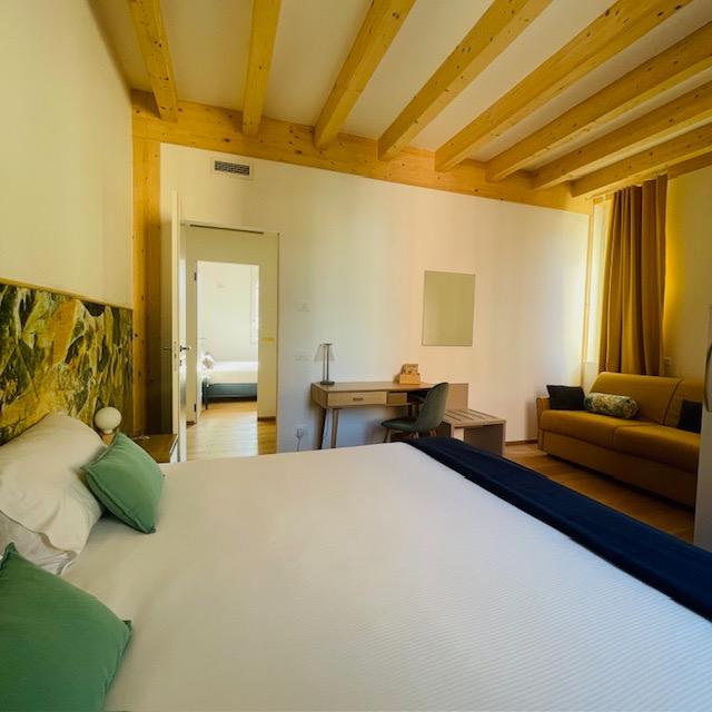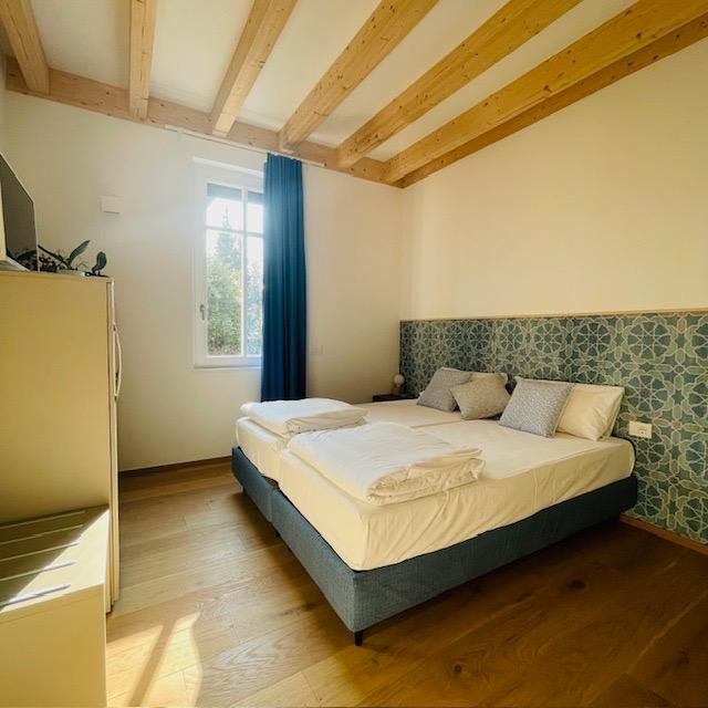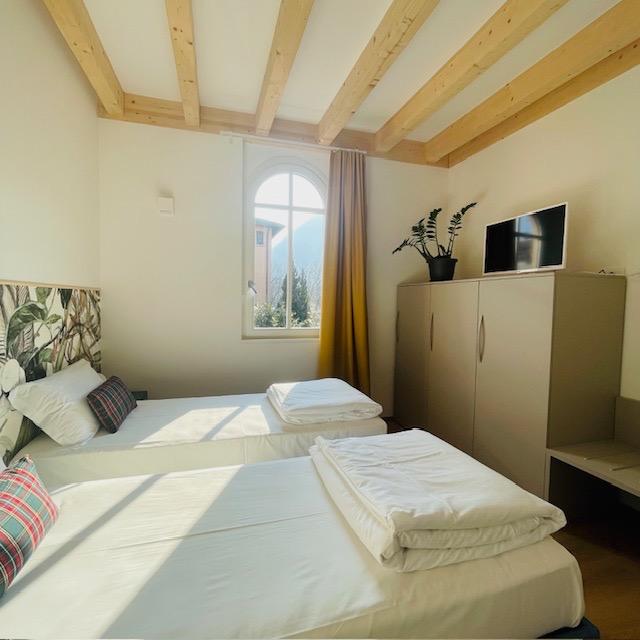Las habitaciones dobles, todas con baño privado, son cómodas y pueden acomodar camas adicionales si se solicita. También hay suites familiares que pueden albergar hasta seis personas, perfectas para quienes viajan en grupo o con la familia. Para quienes buscan mayor independencia, algunas habitaciones cuentan con cocina pequeña y balcón con vistas.