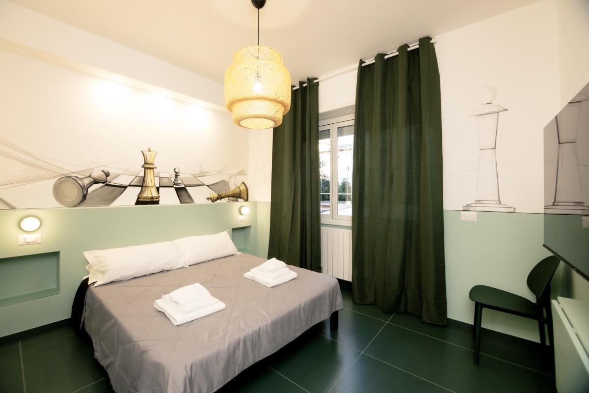 Le quattro camere, curate nei minimi dettagli, includono due Suites con vasca idromassaggio in camera e due Matrimoniali. Ogni camera è dotata di bagno privato con doccia idromassaggio, Smart TV da 55 pollici, aria condizionata e decorazioni murali artigianali ispirate ai più celebri giochi da tavolo, realizzate a mano dai talentuosi Fratelli Ruggieri.