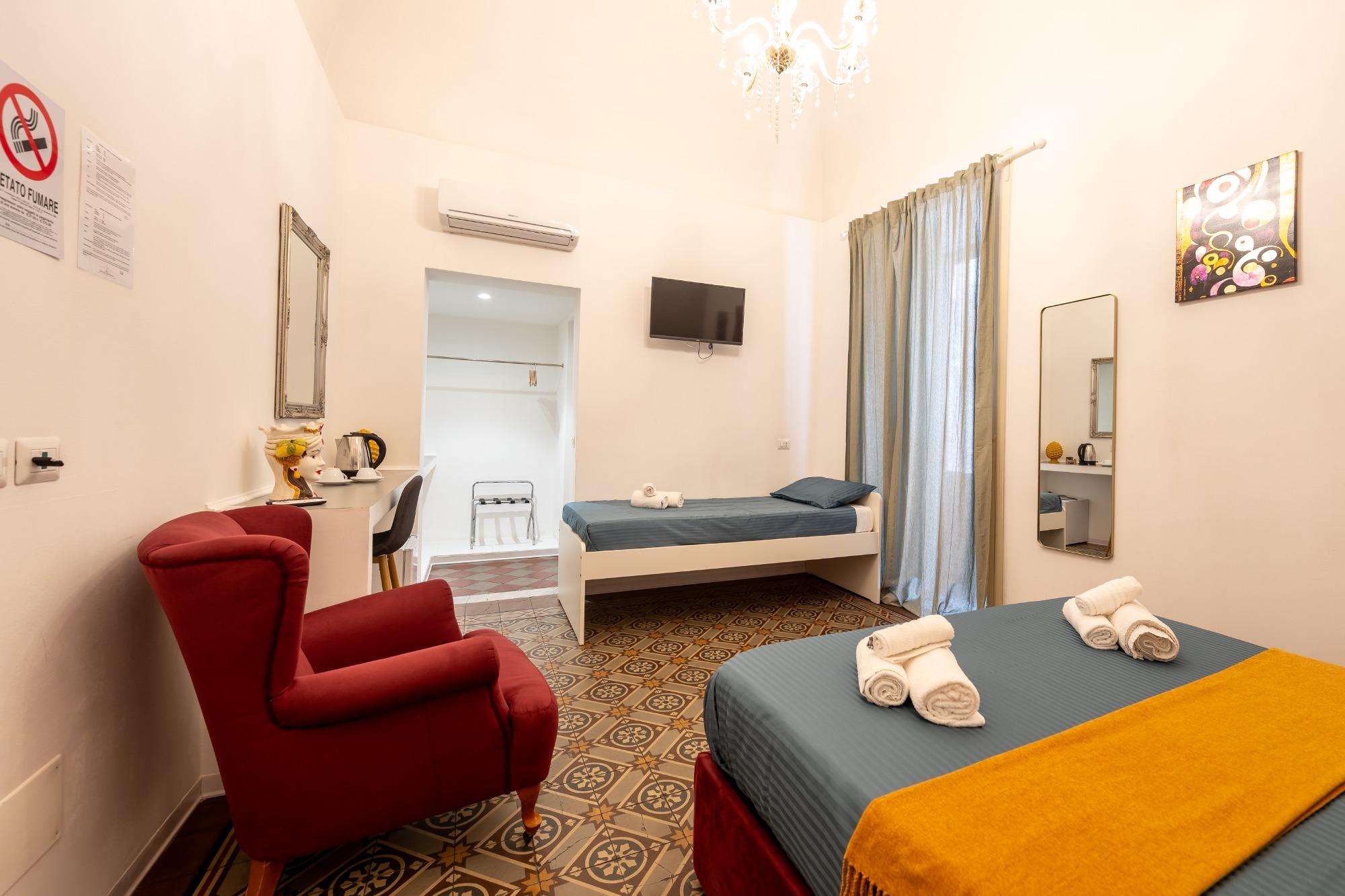 Palazzo Bicocca Rooms offre un'accoglienza esclusiva nel cuore del centro storico di Catania, all’interno del maestoso Palazzo Barone Bicocca, simbolo di eleganza e fascino d’altri tempi. La struttura combina il pregio architettonico con servizi moderni, garantendo un soggiorno confortevole. Le camere, arredate con attenzione ai dettagli, dispongono di bagno privato con doccia, asciugacapelli, set di cortesia e accessori come macchina per il caffè e bollitore. Wi-Fi gratuito, climatizzazione, TV a schermo piatto e minibar completano l’offerta.