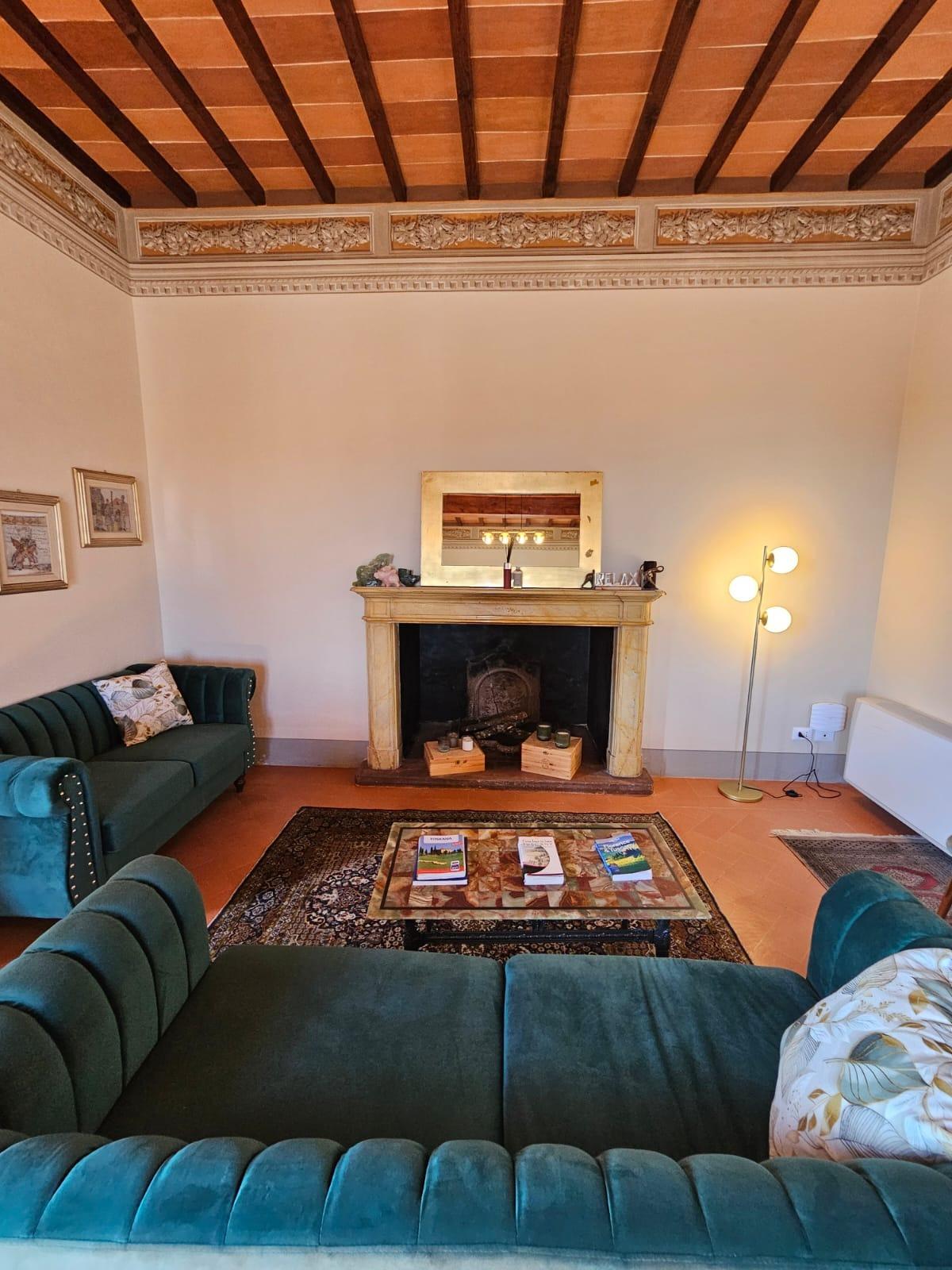 Gli spazi comuni, come il salotto con camino e la sala colazioni, creano un’atmosfera calda e accogliente. Ogni mattina gli ospiti vengono deliziati con torte fatte in casa e prodotti locali, serviti anche in giardino, con vista sulle colline. Il parcheggio riservato completa l’offerta di servizi pensati per rendere ogni soggiorno piacevole e senza pensieri.