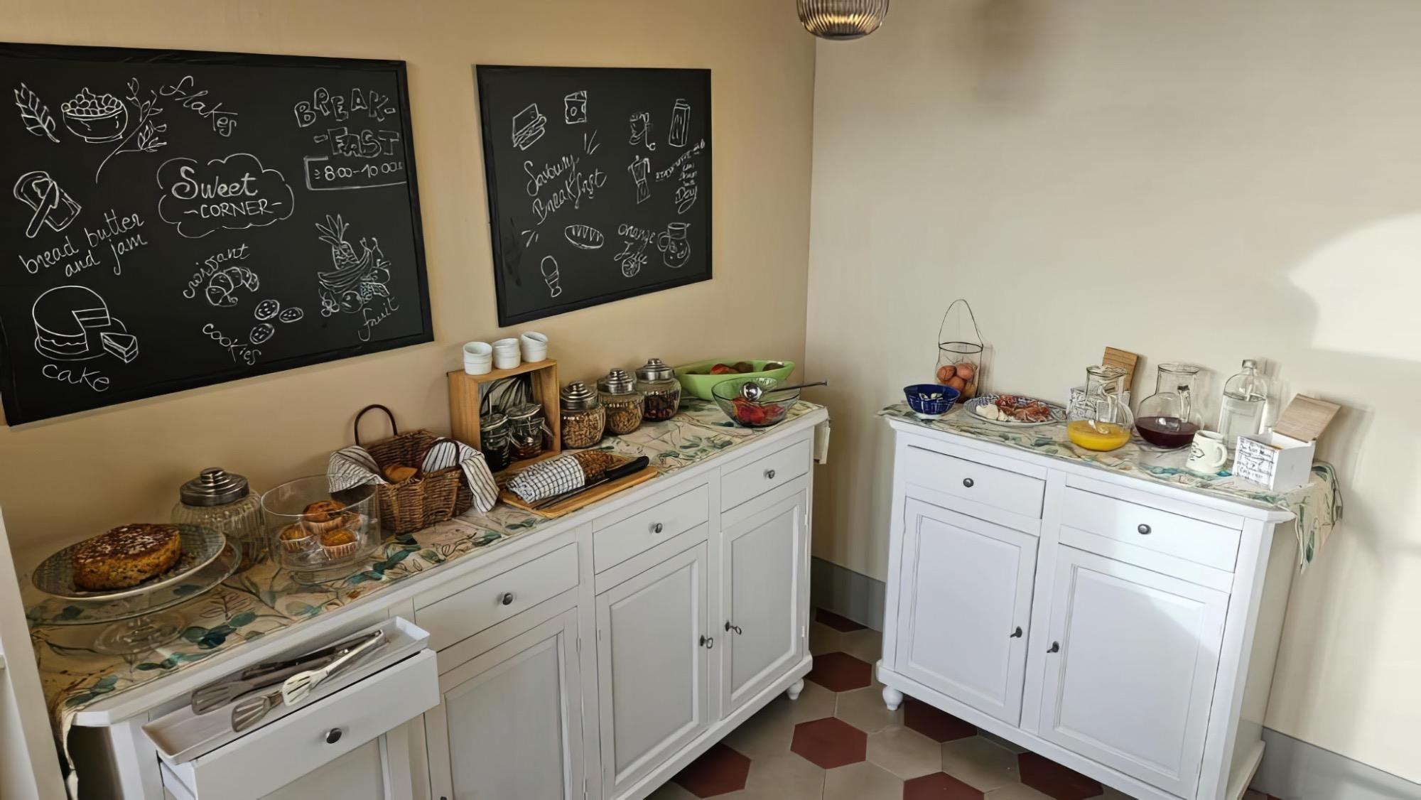 La colazione a Palazzo delle Erbe è un momento di autentico piacere, dedicato esclusivamente ai sapori dolci della tradizione italiana. Ogni mattina vi attende una selezione curata di caffè, tè, cappuccino, latte e yogurt, accompagnata da cereali, frutta fresca, succhi, biscotti, pane e fette biscottate con marmellata. Non manca il classico cornetto, fragrante e appena sfornato, per iniziare la giornata con il gusto semplice e genuino della colazione all’italiana. Quando il tempo lo consente, potrete gustarla anche all’aperto, circondati dal verde del giardino e dalla quiete delle colline senesi.
