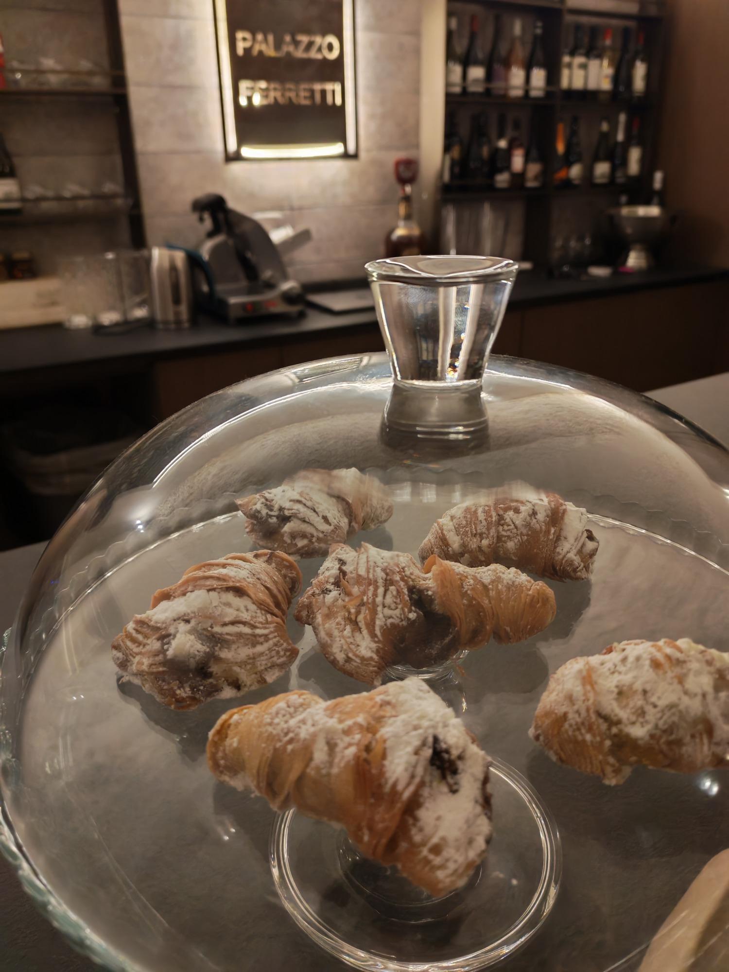 La colazione a Palazzo Ferretti rappresenta un momento dedicato al piacere del risveglio e alla scoperta dei sapori autentici del territorio vesuviano. Ogni mattina viene proposta una colazione all’italiana preparata con una selezione curata di prodotti locali e artigianali, pensata per offrire qualità, genuinità e varietà. Gli ospiti possono gustare fragranti cornetti e dolci della tradizione campana, pane fresco, marmellate e miele del territorio, torte fatte in casa, yogurt, cereali e frutta di stagione, accompagnati da succhi e caffetteria espressa preparata al momento. Particolare attenzione è riservata alla scelta delle materie prime, con l’obiettivo di valorizzare le eccellenze locali e offrire un’esperienza autentica fin dalle prime ore della giornata. Su richiesta sono disponibili opzioni gluten free e proposte dedicate a specifiche esigenze alimentari. Per chi desidera una colazione più ricca, è possibile aggiungere con supplemento una selezione in stile continentale con proposte salate e proteiche. Il servizio viene servito all’interno della suggestiva area breakfast & bar ricavata in una storica cantina in tufo napoletano, un ambiente intimo e caratteristico che unisce atmosfera, tradizione e comfort contemporaneo.