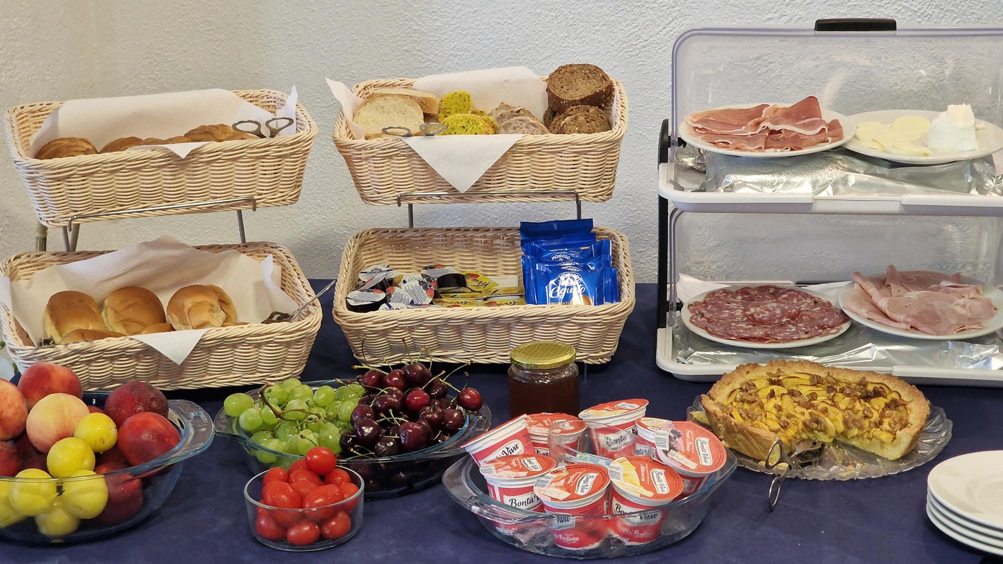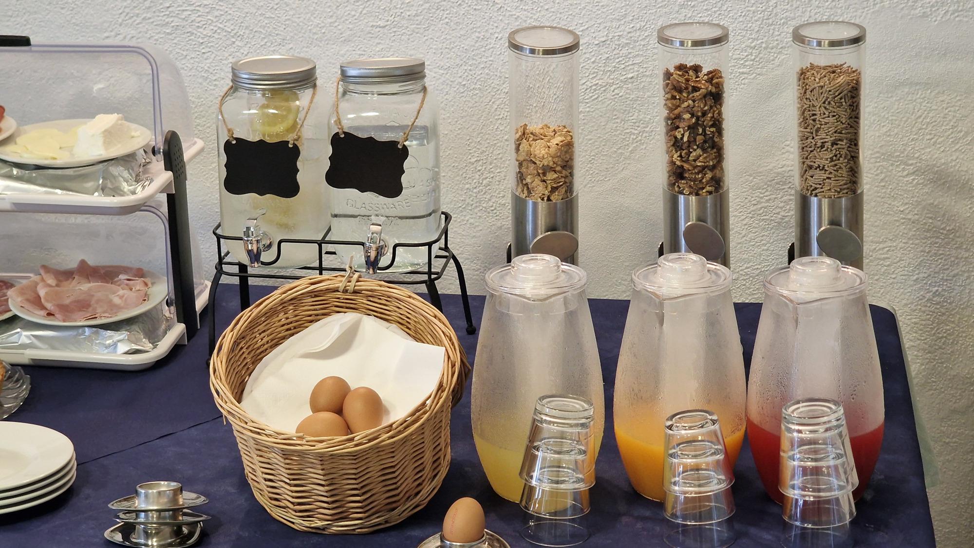 Our delightful continental breakfast is served from 8:00 to 10:00. You can enjoy a freshly baked fragrant croissant, bread and fresh fruit, fruit juices, yogurt, and a selection of jams. Additionally, there is a savory corner to satisfy your tastes, where you can savor freshly made coffee and cappuccino.