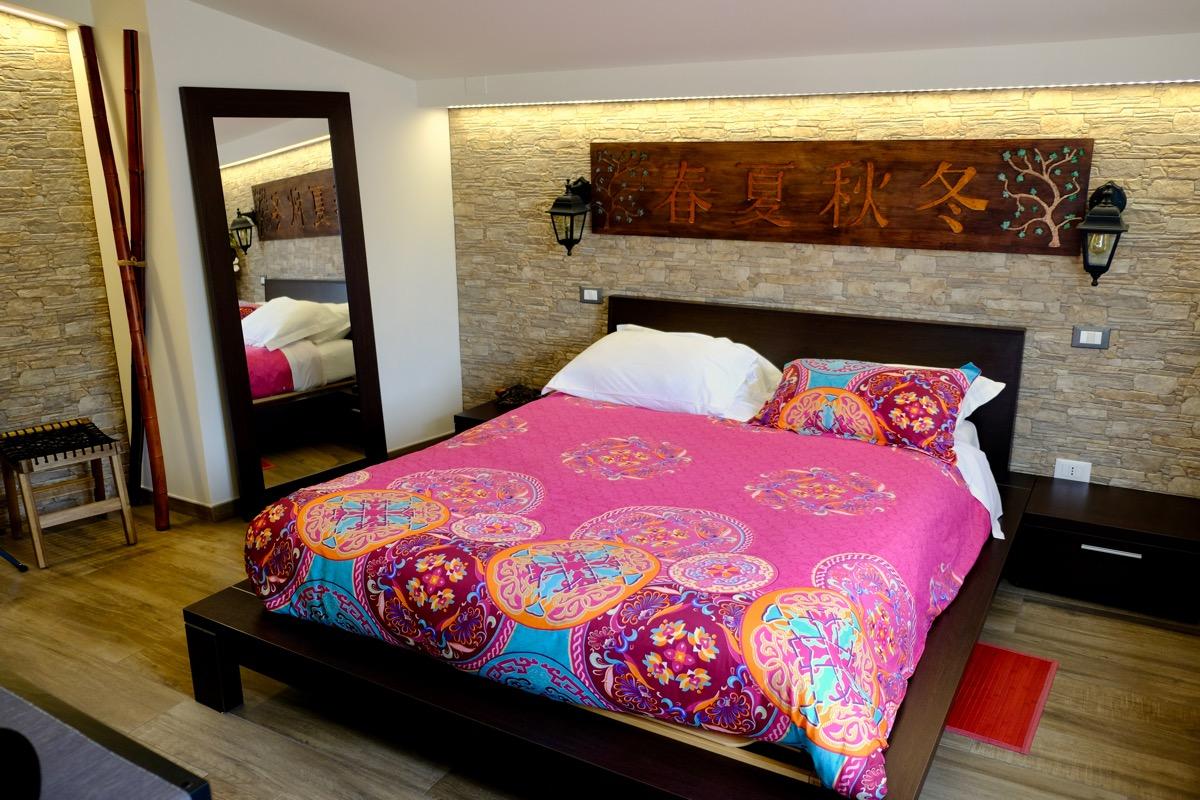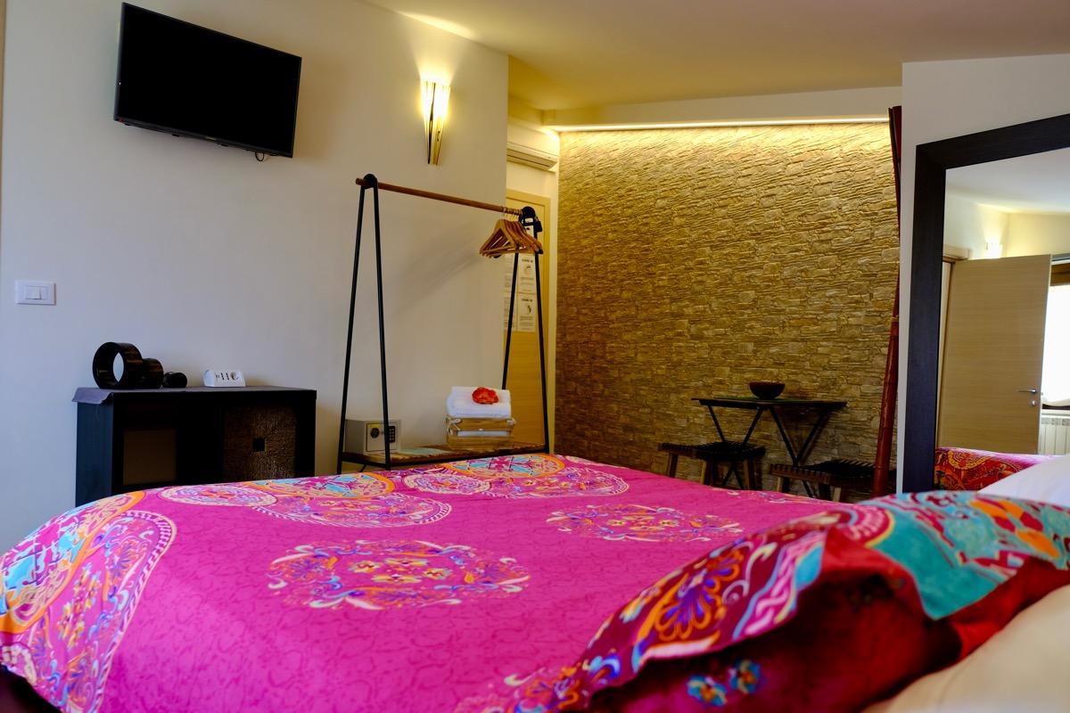 This structure is located just minutes from the city center and the sea, but is completely surrounded by the lush vegetation of the hills of Pescara. Here you can enjoy the sea breeze and the warm rays of the sun, in a wonderful oasis of peace and relaxation. Our facility offers you the opportunity to choose between three themed rooms, so you can find the one that you like best for your stay. Each room offers different experiences and emotions, giving you the pleasure of coming back and always experiencing new emotions. In addition to the bed & breakfast service, we have an outdoor area surrounded by greenery, with a charming square where you can enjoy a peaceful breakfast or relax away from the hustle and bustle of the city. Furthermore, we have an enclosed parking lot with an automatic gate that you can manage independently.