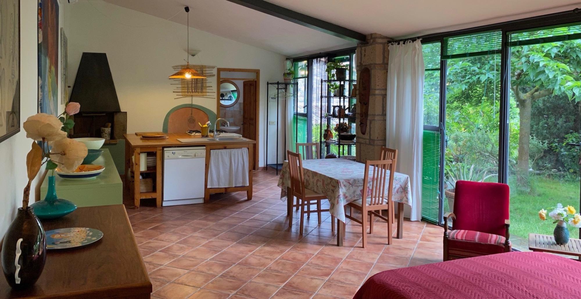 Die Wohnung 'desiderio' besteht aus einem großen Wohnraum, einer Kochnische, einem Schlafzimmer und einem Badezimmer. Sie ist freundlich, hell und geschmackvoll eingerichtet. Der Fußboden ist ein ursprünglicher alter Cottoboden, die Decke original aus Holzbalken mit Cotto. Der Ausblick schweift über sanfte Hügel, Olivenhaine, Weingärten und Wald.