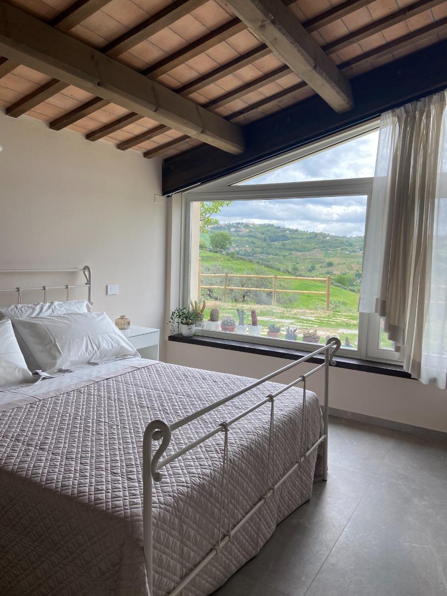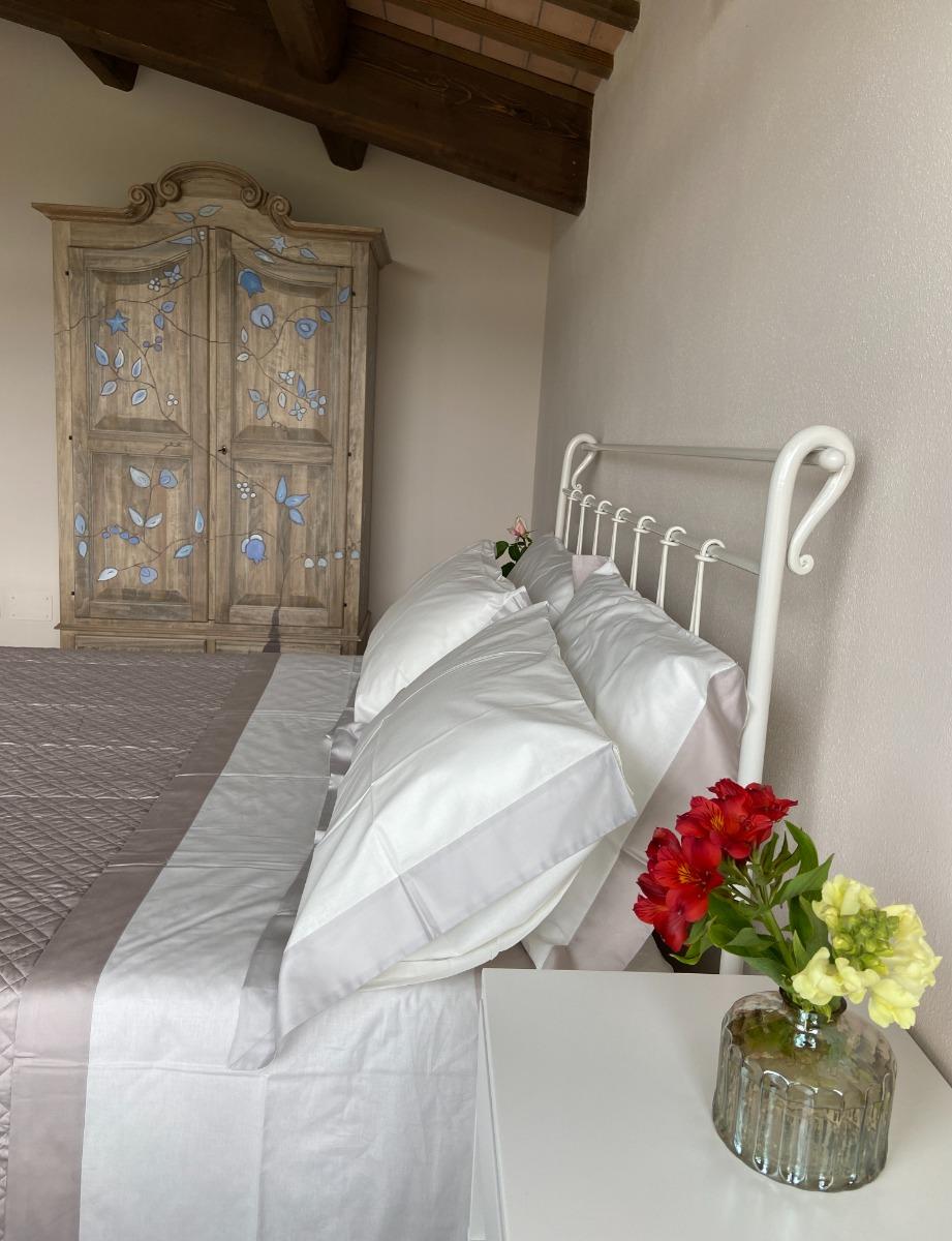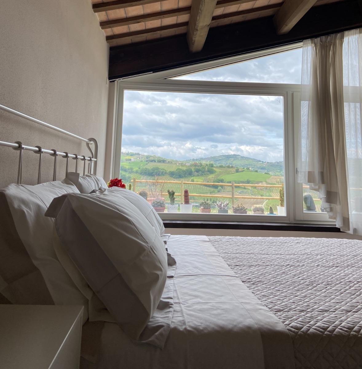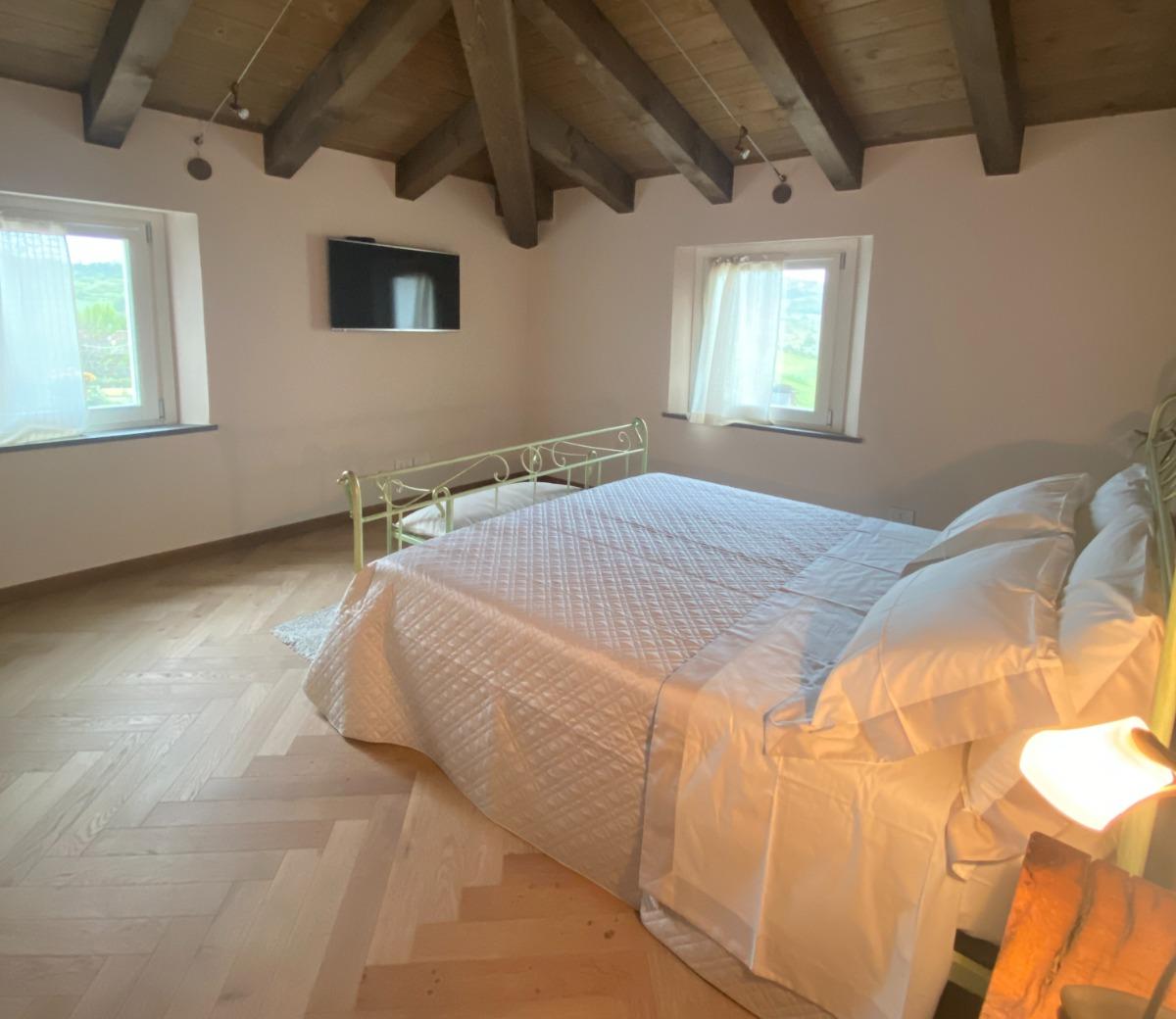 Les deux chambres matrimoniales, offrant une vue panoramique sur les collines, conservent l'authenticité du bâtiment d'origine grâce à la restauration des poutres séculaires et à l'attention portée aux détails, visibles dans les salles de bains, les chambres et l'escalier intérieur, véritables symboles de notre respect pour l'histoire du lieu. Les meubles, modernes mais dotés d'une âme ancienne, racontent l'équilibre entre le passé et le présent.