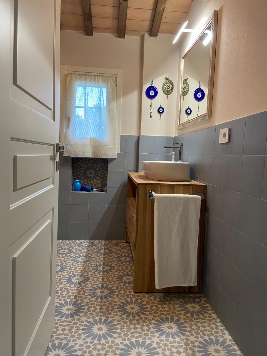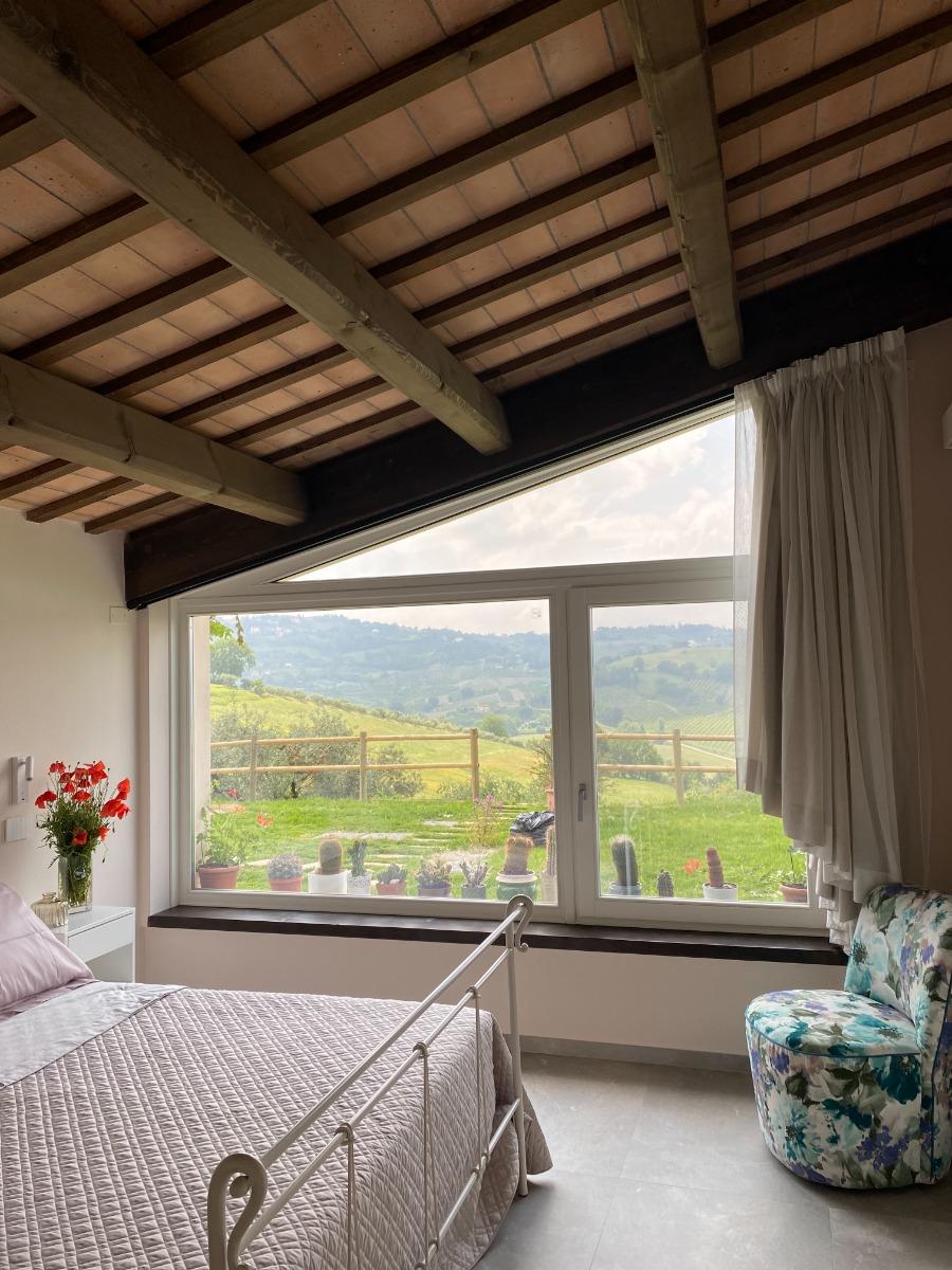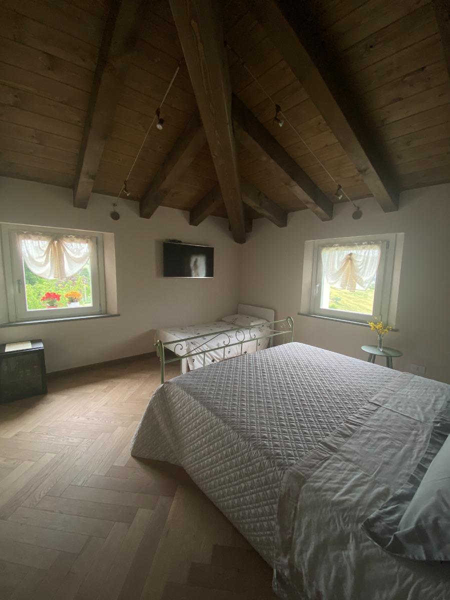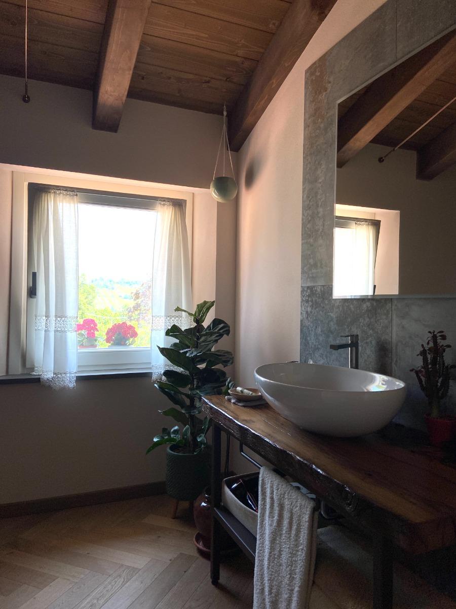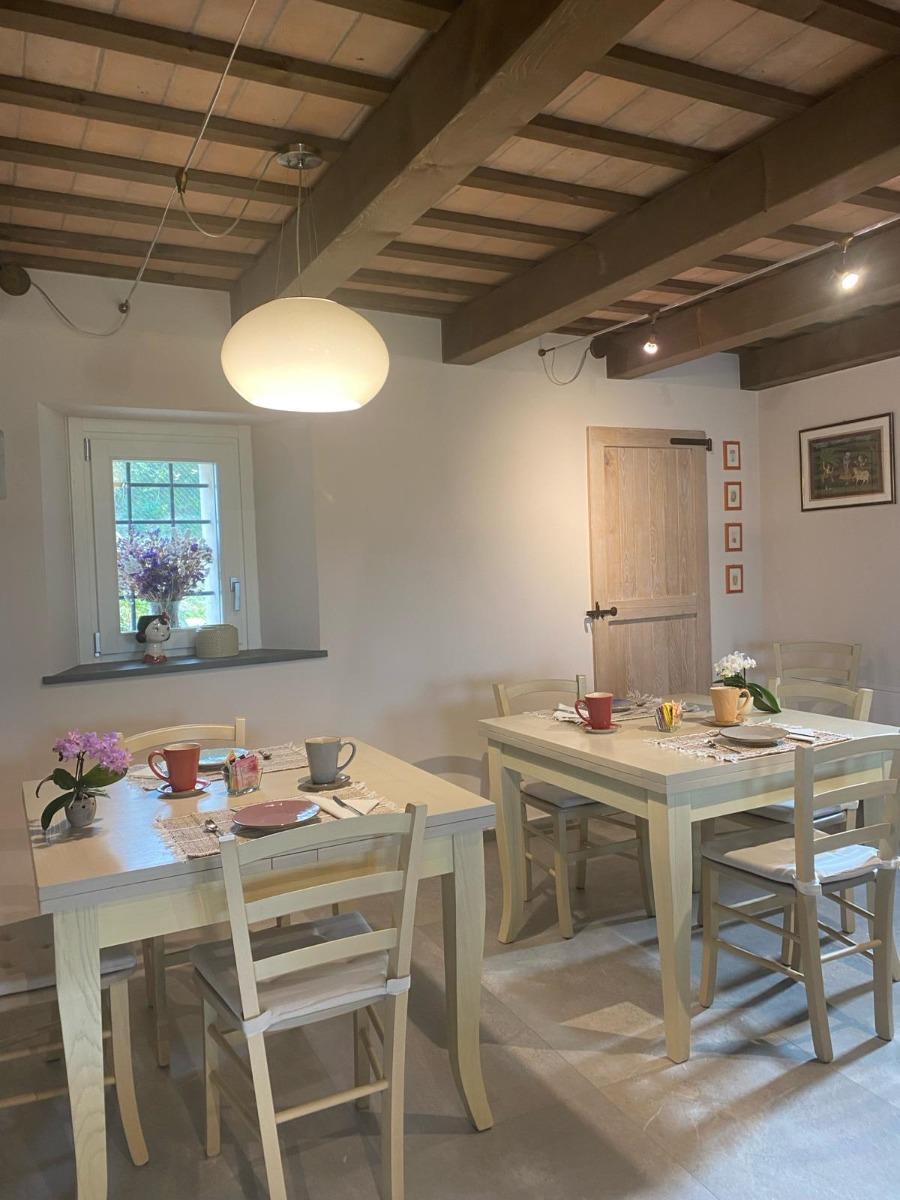 Les deux chambres matrimoniales, offrant une vue panoramique sur les collines, conservent l'authenticité du bâtiment d'origine grâce à la restauration des poutres séculaires et à l'attention portée aux détails, visibles dans les salles de bains, les chambres et l'escalier intérieur, véritables symboles de notre respect pour l'histoire du lieu. Les meubles, modernes mais dotés d'une âme ancienne, racontent l'équilibre entre le passé et le présent.