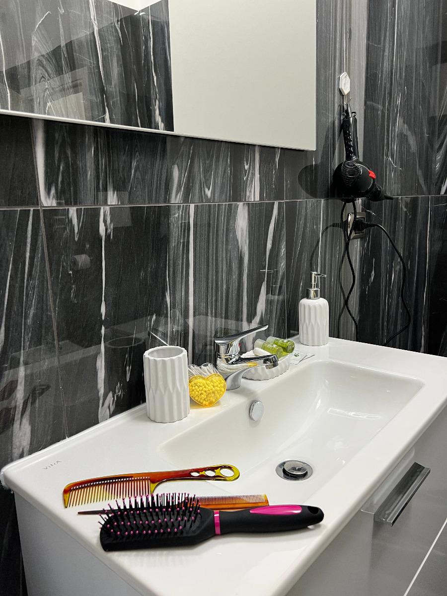 Case Vacanze a Montesilvano: La Tua Alternativa Ideale agli Hotel con Piscina e Campi da Padel Se stai cercando una casa vacanza a Montesilvano per goderti una pausa sulla splendida costa adriatica, il nostro alloggio è la scelta perfetta. Situato a soli 5 minuti dalla spiaggia, il nostro appartamento di 90 mq è completamente climatizzato, garantendo comfort in ogni stagione. Il salone è uno spazio luminoso e accogliente, dotato di un angolo cottura attrezzato con forno e lavastoviglie, ideale per riunirsi con amici e famiglia. L’area pranzo può ospitare comodamente fino a 6 persone, e il divano letto offre spazio aggiuntivo per accogliere altri ospiti. La TV completa l’atmosfera, permettendoti di rilassarti dopo una giornata di avventure. Le due camere da letto, anch’esse climatizzate, offrono eleganza e comfort. La camera principale è un rifugio lussuoso con bagno privato dotato di vasca, mentre la cameretta con due letti singoli è perfetta per famiglie o amici. Entrambe le camere sono equipaggiate con TV. Il nostro appartamento, rivestito in marmo nero, conferisce un tocco di raffinatezza a ogni ambiente. Il giardino, ricco di alberi di canfora, è ideale per momenti di relax, mentre la piscina è perfetta per rinfrescarsi e divertirsi. Inoltre, la vicinanza alla spiaggia e ai campi da padel rende la tua esperienza ancora più completa. Scopri le meraviglie di Montesilvano e prenota ora per immergerti nella dolce vita adriatica!