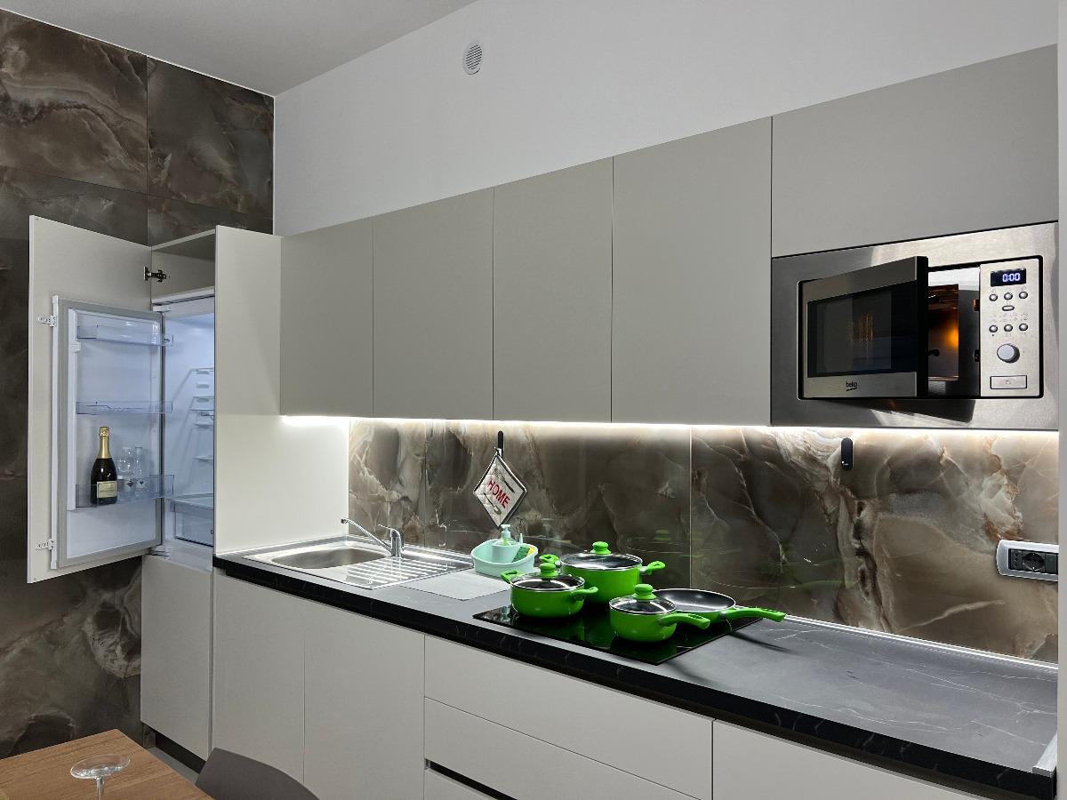 Monolocale Elegante con Marmo Nero: Comfort e Raffinatezza Lasciati conquistare dal fascino senza tempo di questo monolocale accogliente, decorato con pregiate finiture in marmo nero che esaltano il design moderno e l’atmosfera sofisticata. Perfetto per 3 ospiti, offre spazi ben organizzati per un soggiorno all’insegna del relax: 2 ospiti possono riposare comodamente sul letto matrimoniale e 1 sul pratico divano letto o letto aggiunto Cosa rende unico questo monolocale? Materiali di Pregio: Il marmo nero dona profondità e carattere agli interni, creando un ambiente esclusivo e moderno. Zona Notte Confortevole: Un letto matrimoniale con materasso premium garantisce un riposo rigenerante, mentre il divano letto offre flessibilità e comfort aggiuntivo. Cucina Moderna: Dotata di forno e utensili necessari, ti consente di preparare ogni pasto con facilità. Bagno Elegante: Una grande doccia con finiture di alta qualità aggiunge un tocco di lusso. Ampio Balcone: Uno spazio esterno privato per goderti l’aria aperta e il panorama circostante. Servizi del Residence Marco Polo: Approfitta della piscina privata, dei campi da padel, e del giardino curato, perfetti per momenti di relax o divertimento. La struttura è anche pet-friendly, per un soggiorno che include ogni membro della famiglia. ?? Prenota ora e vivi l’eleganza e il comfort di questo monolocale al Residence Marco Polo!