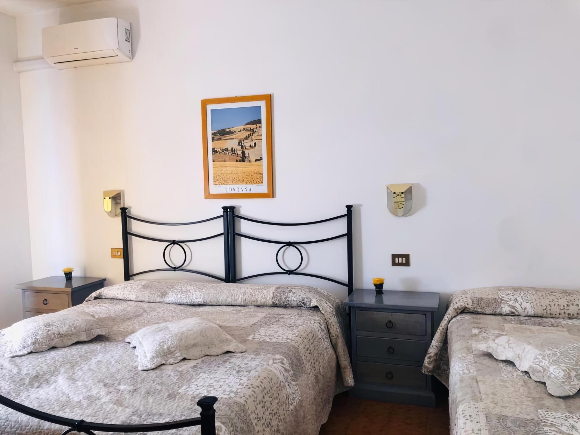 L'emplacement de l'hôtel permet également des excursions d'une journée vers des endroits de grand intérêt : Pienza, parfait exemple de "ville idéale" souhaitée par le Pape Pie II, offre des vues inoubliables sur la Val d'Orcia et un centre historique soigné et dynamique. Montalcino, berceau du Brunello, offre des panoramas époustouflants et des saveurs riches, tandis que Bagno Vignoni surprend avec sa source thermale au cœur du village. Chianciano Terme, à proximité, combine le bien-être de ses eaux curatives à un centre historique paisible et verdoyant.