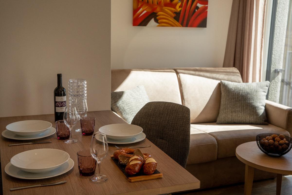 Beautiful spacious and bright apartment for 2/4 people. Bedroom with double bed, living area equipped with a 2-seater sofa bed, large wardrobe and dining area with panoramic mountain views.