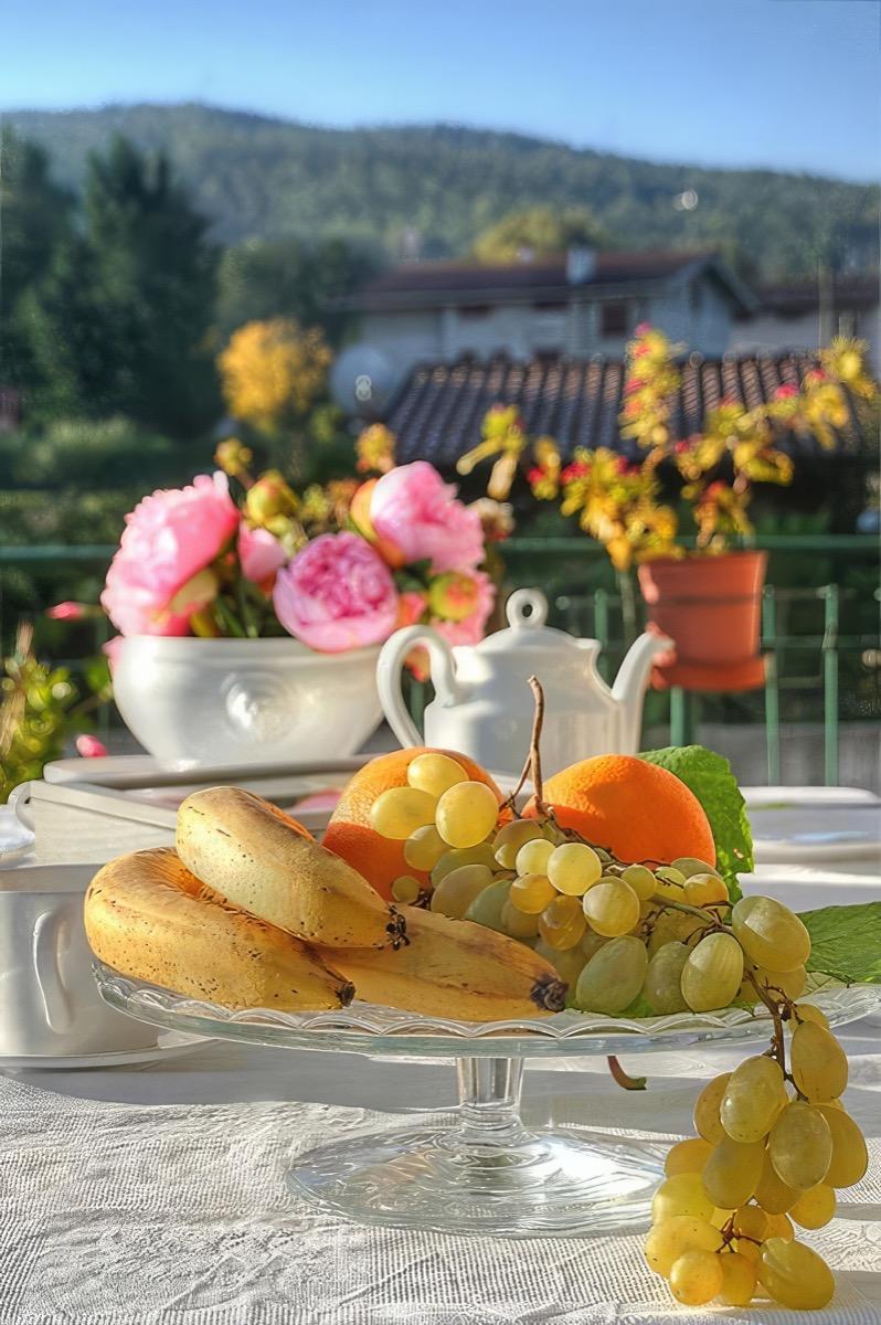 The B&B is surrounded by nature, with ample green spaces, fruit trees that our guests can pick, fragrant flowers, and a vegetable garden where we grow produce for preserves and jams.