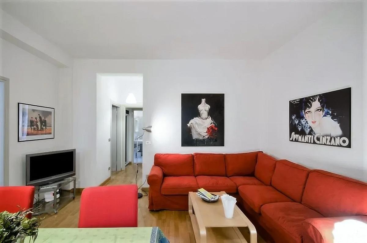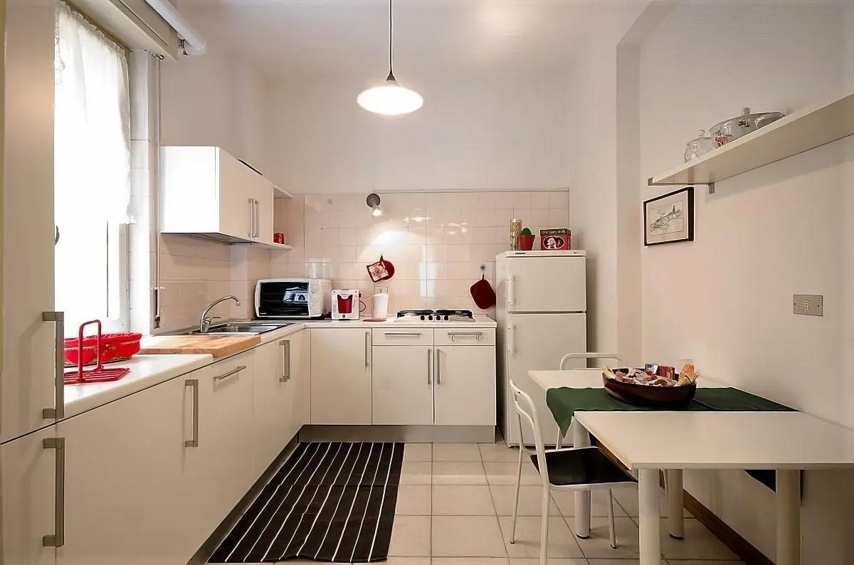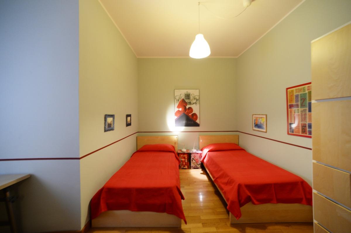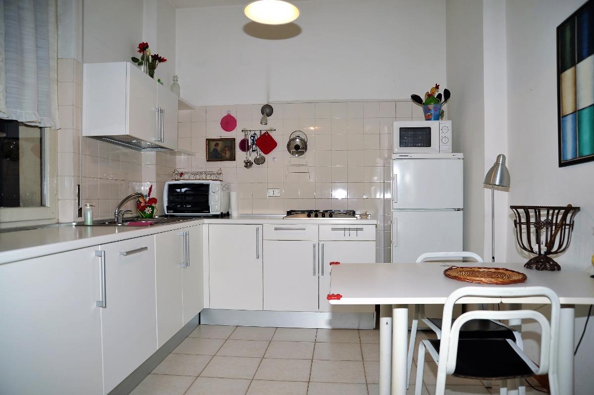 E' composto da soggiorno con tavolo per sei/otto persone, due camere da letto di cui una matrimoniale e l'altra con due letti singoli, scrivania ed armadio, due bagni completi, uno con grande doccia e l'altro con vasca, cucina abitabile con tavolo per quattro persone, cabina armadio/lavanderia.