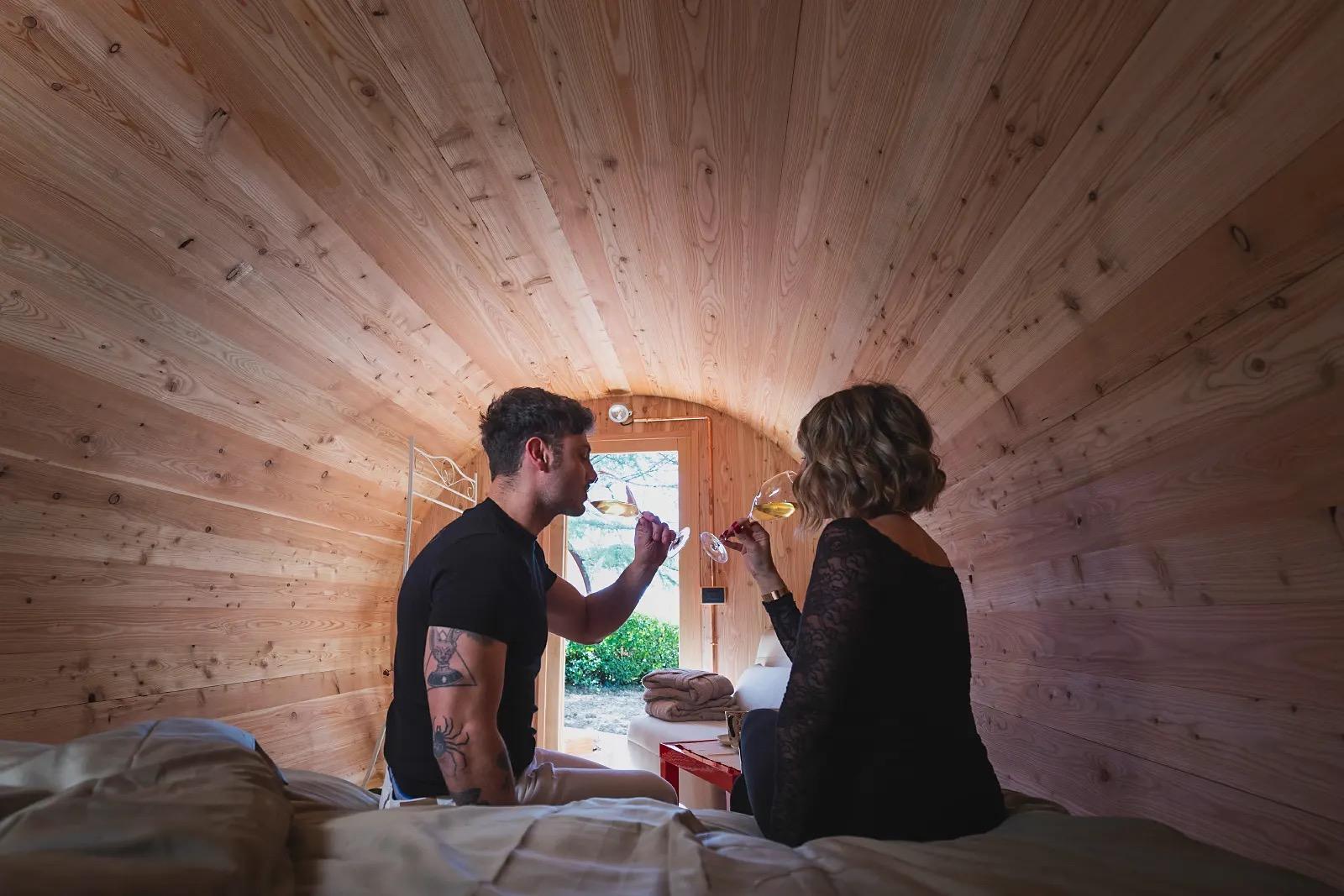 Rifugio DiVino is a countryside retreat nestled in the Reatino countryside that offers a unique approach to hospitality. The accommodations, crafted from genuine oak barrels, are set within a tranquil and well-maintained natural environment, perfect for those seeking relaxation, privacy, and an experience that goes beyond a typical stay.