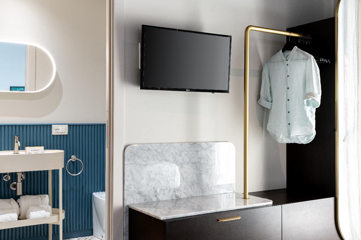 The room is furnished with materials that recall the tradition of Follonica, using elements that tell the story of local products. The room is equipped with a large King Size double bed (180x200) to guarantee maximum comfort. You will also find a desk, ideal for working or as a writing desk, and all the necessary comforts: minibar, Nespresso coffee machine, kettle, hairdryer and much more. The elegant and functional bathroom is equipped with a large crystal shower cubicle and offers a selection of fine body products by Acqua dell'Elba, for a unique wellness experience.