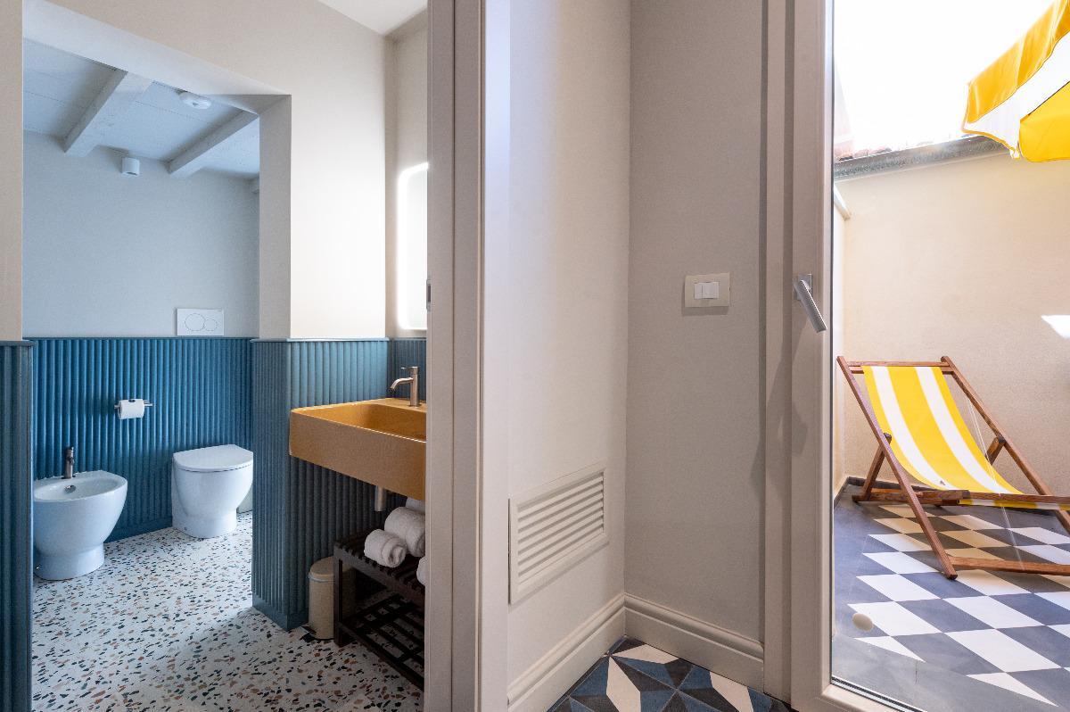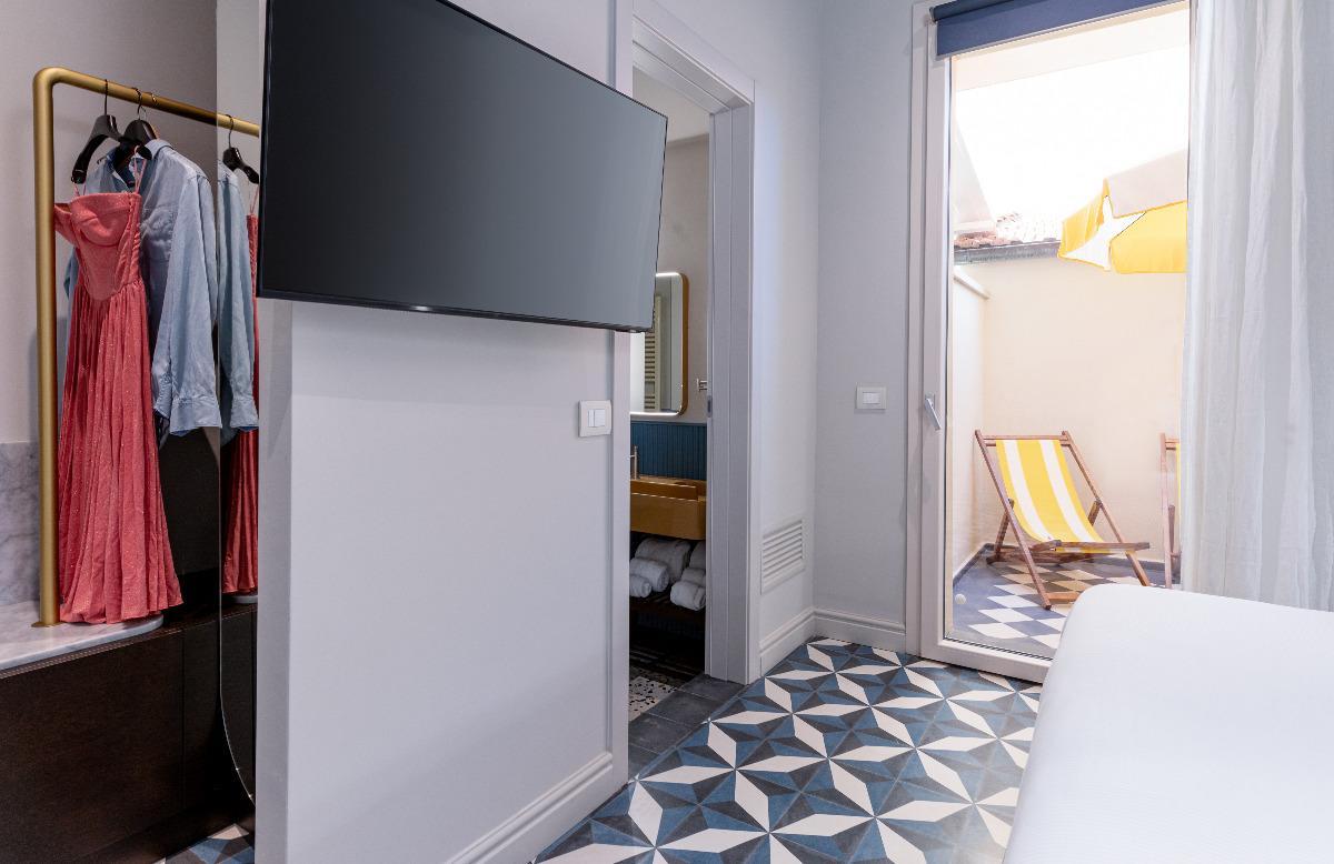 The room is furnished with materials that recall the tradition of Follonica, using elements that tell the story of local products. It is equipped with a large King Size double bed (180x200) to guarantee maximum comfort. You will also find a desk, ideal for working or as a writing desk, and all the necessary comforts: minibar, Nespresso coffee machine, kettle, hairdryer and much more. The elegant and functional bathroom is equipped with a large crystal shower cubicle and offers a selection of fine body products by Acqua dell'Elba, for a unique wellness experience. Furthermore, guests can enjoy a private outdoor courtyard, perfect for relaxing outdoors and enjoying moments of tranquility.