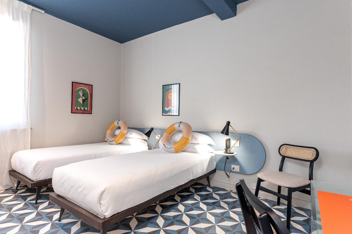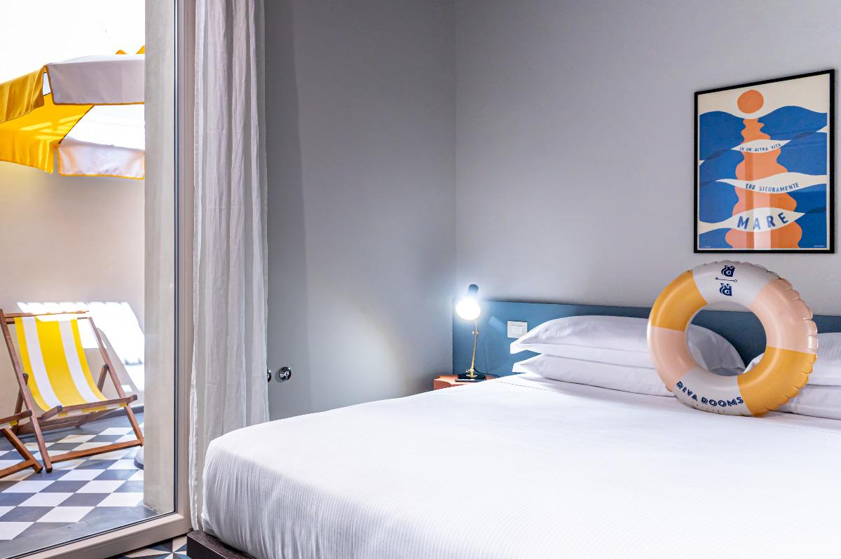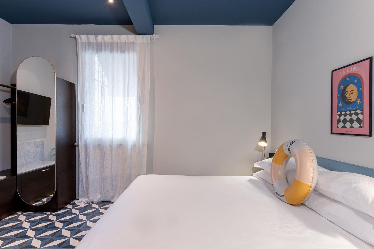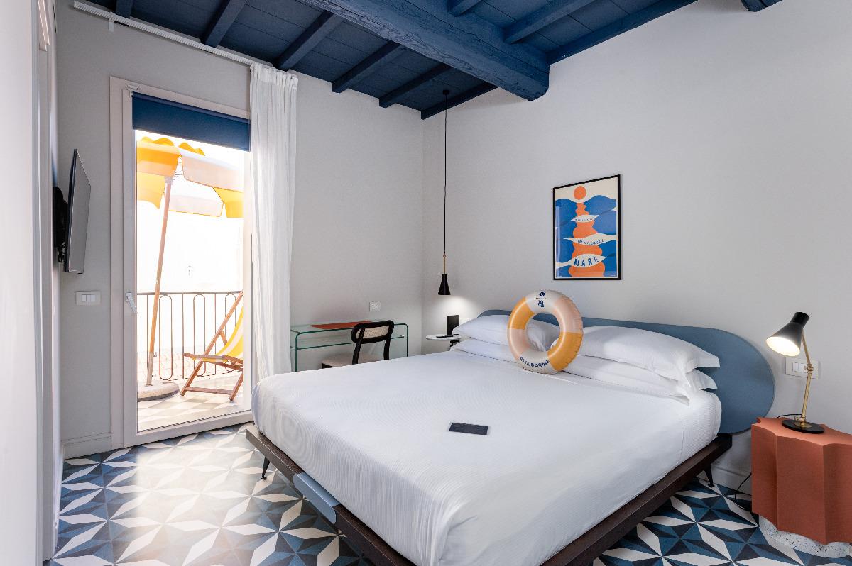 The room is furnished with materials that recall the tradition of Follonica, using elements that tell the story of local products. The ceilings with exposed wooden beams add a touch of warmth and authenticity to the environment. The room has a small French balcony, ideal for looking out and enjoying the lively surrounding atmosphere and the view of the historic church of San Leopoldo. The room is equipped with a large King Size double bed (180x200) to guarantee maximum comfort. You will also find a desk, ideal for working or as a writing desk, and all the necessary comforts: minibar, Nespresso coffee machine, kettle, hairdryer and much more. The elegant and functional bathroom is equipped with a large crystal shower cubicle and offers a selection of fine body products by Acqua dell'Elba, for a unique wellness experience.