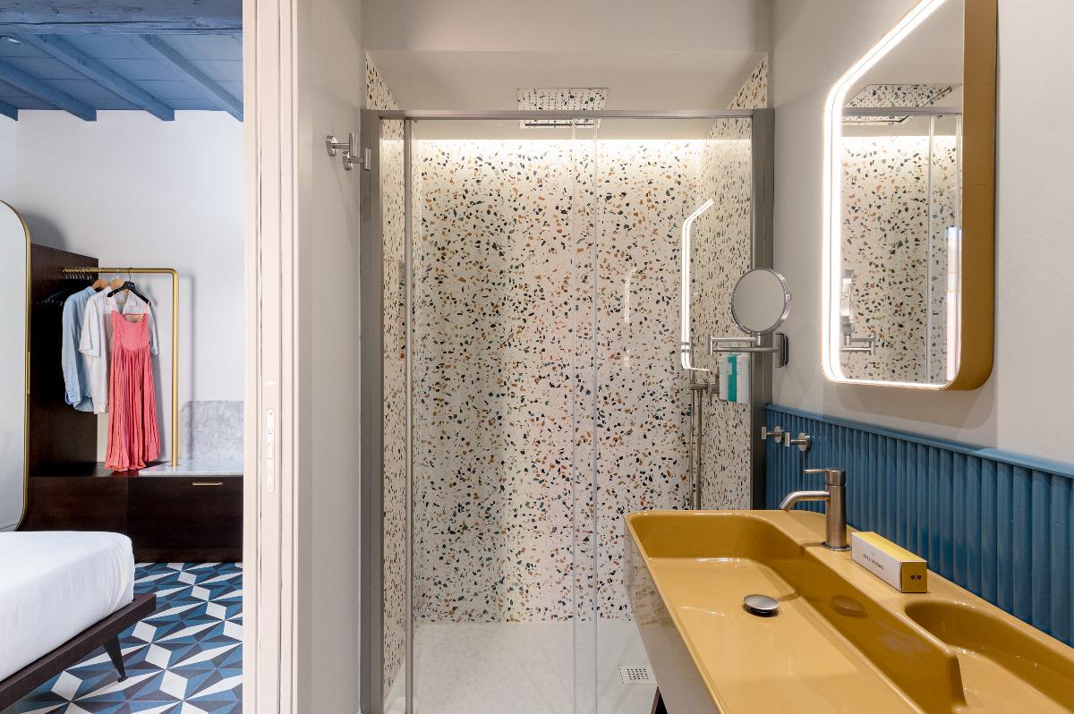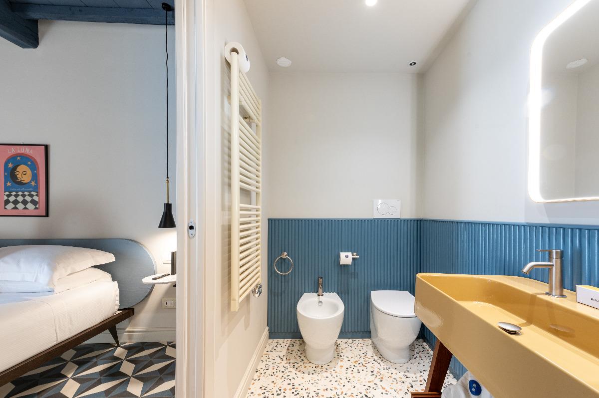 The rooms are tastefully decorated, featuring handmade cement tile floors that add a unique artisanal touch. Each room comes equipped with air conditioning, complimentary Wi-Fi, and a flat-screen TV, while the private bathrooms, fully renovated, retain the charm of the past with vintage tiles and traditional furnishings.